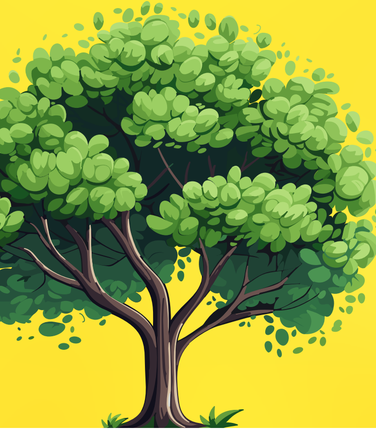 Materiały na gazetkę, wystawkę z okazji Dnia Drzewa. Zawiera napis, drzewa z różnych porach roku, plakat z budową drzewa, hasła nawiązujące do funkcji drzewa