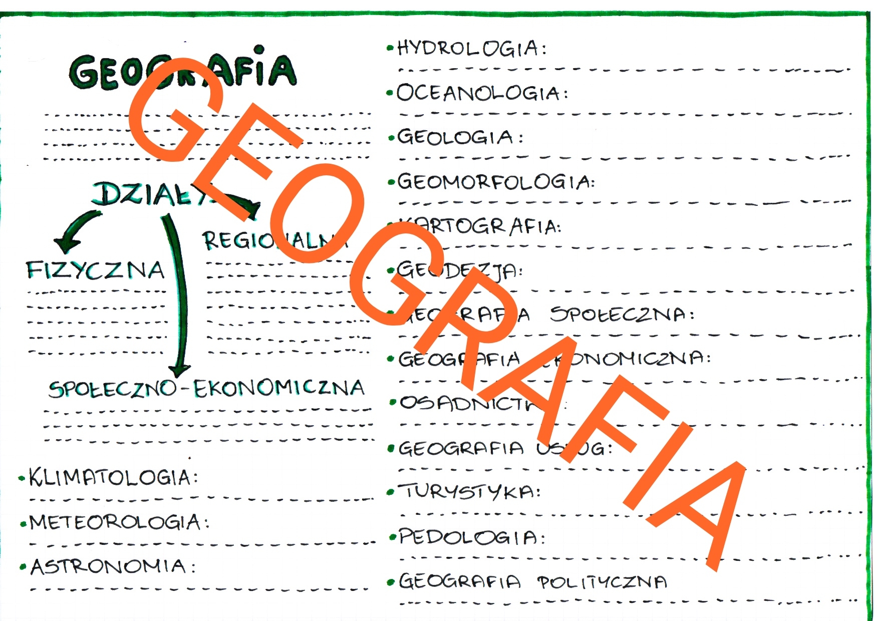 Podział geografii oraz nauki pokrewne. Karta pracy do uzupełnienia dla 1 klasy szkoły ponadpodstawowej lub na kółko geograficzne.
