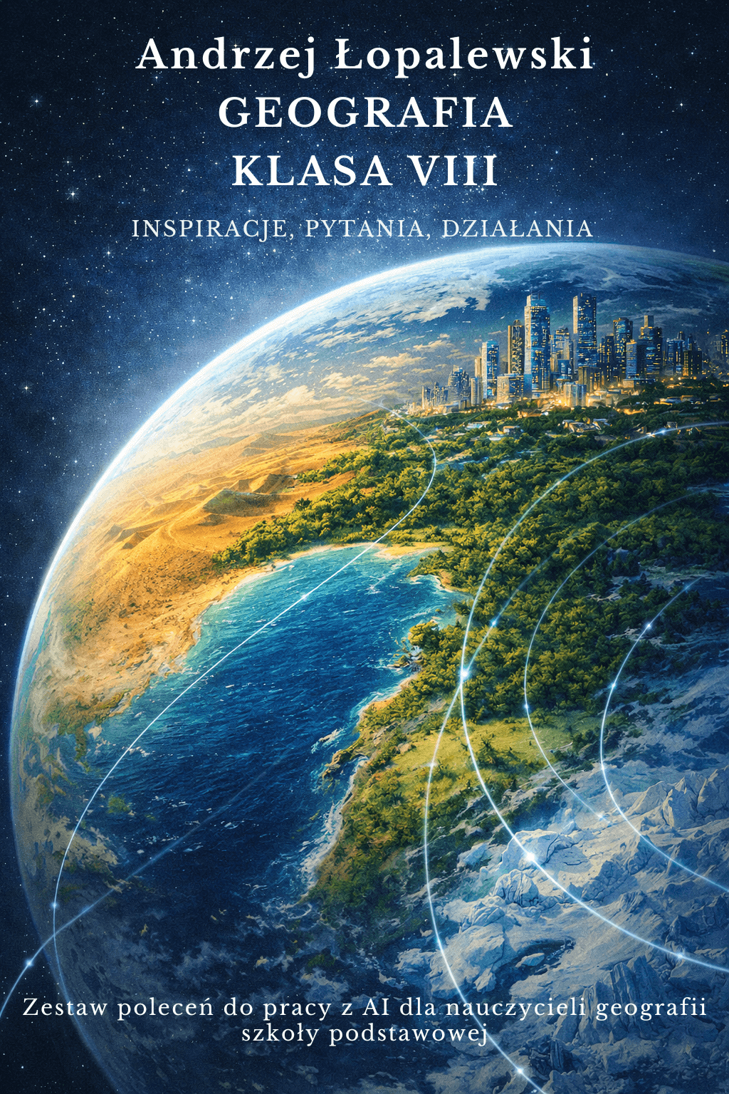 „Inspiracje, pytania, działania” to praktyczne opracowanie dydaktyczne dla nauczycieli geografii klasy VIII, wspierające planowanie i prowadzenie lekcji z wykorzystaniem narzędzi AI (np. ChatGPT, Canva i inne narzędzia tego typu).