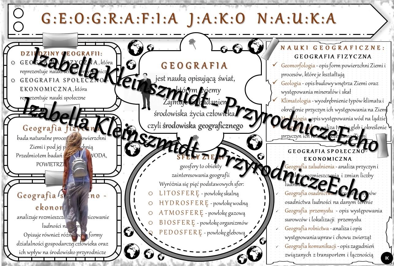 Geograficzna sketchnotka – notatka - wklejka wykonana w power point do tematu „Geografia jako nauka”. Oblicza geografii I, poziom podstawowy, dla liceum ogólnokształcącego i technikum. Geografia I