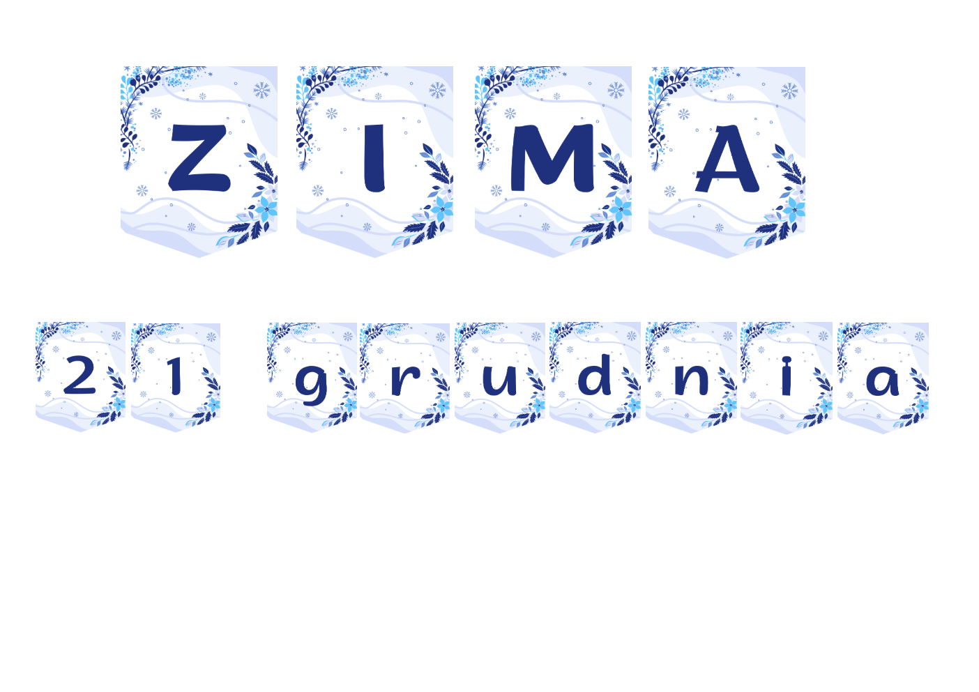 Girlanda na 21 grudnia ZIMA. Litery do wydruku w formacie PDF. Wydrukuj w dowolnym formacie.