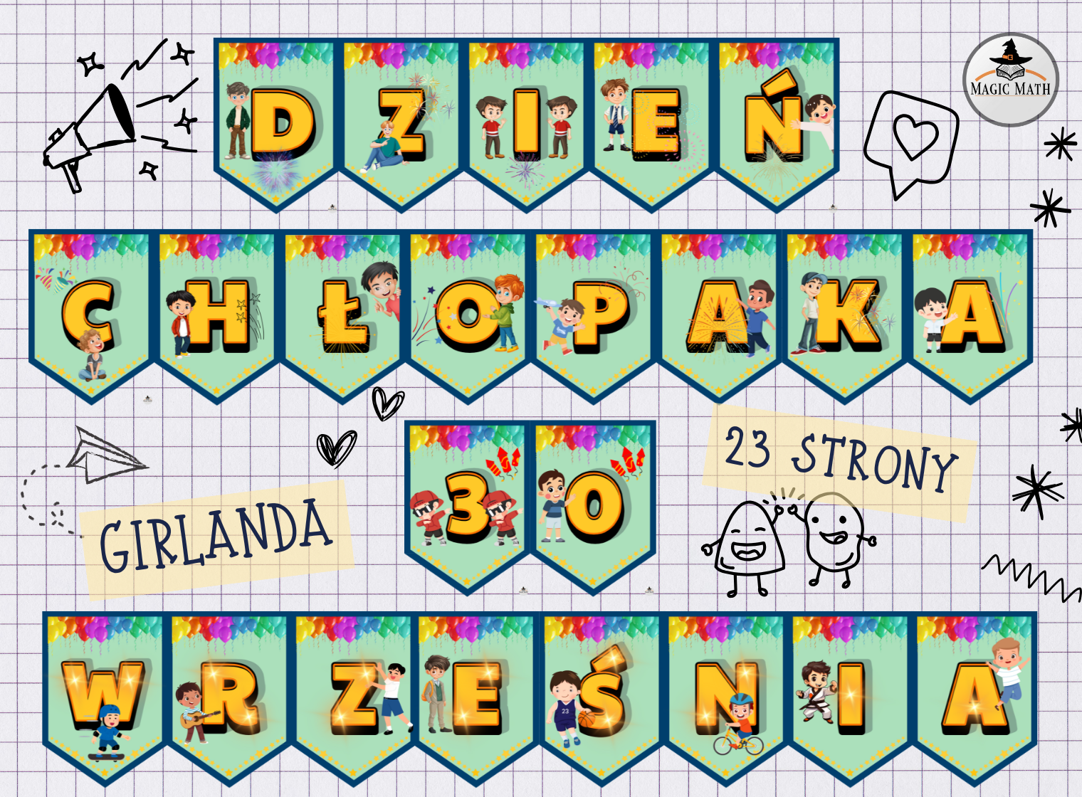 #MagicMath #DzieńChłopaka #GirlandaNaDzieńChłopaka #DekoracjeDoKlasy #MateriałyDlaNauczycieli #DekoracjeSzkolne #DzieńChłopakaWszkole #PomysłyNaDzieńChłopaka #DekoracjeDoDruku #Girlanda #Nauczyciel #świetlica