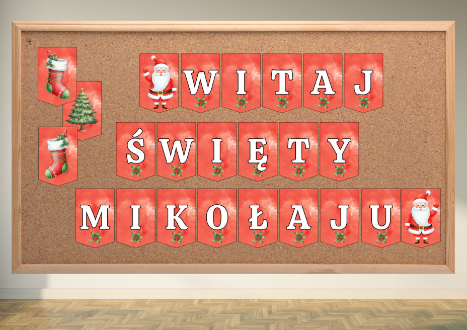 • pełny zestaw liter tworzących napis „Witaj Święty Mikołaju”