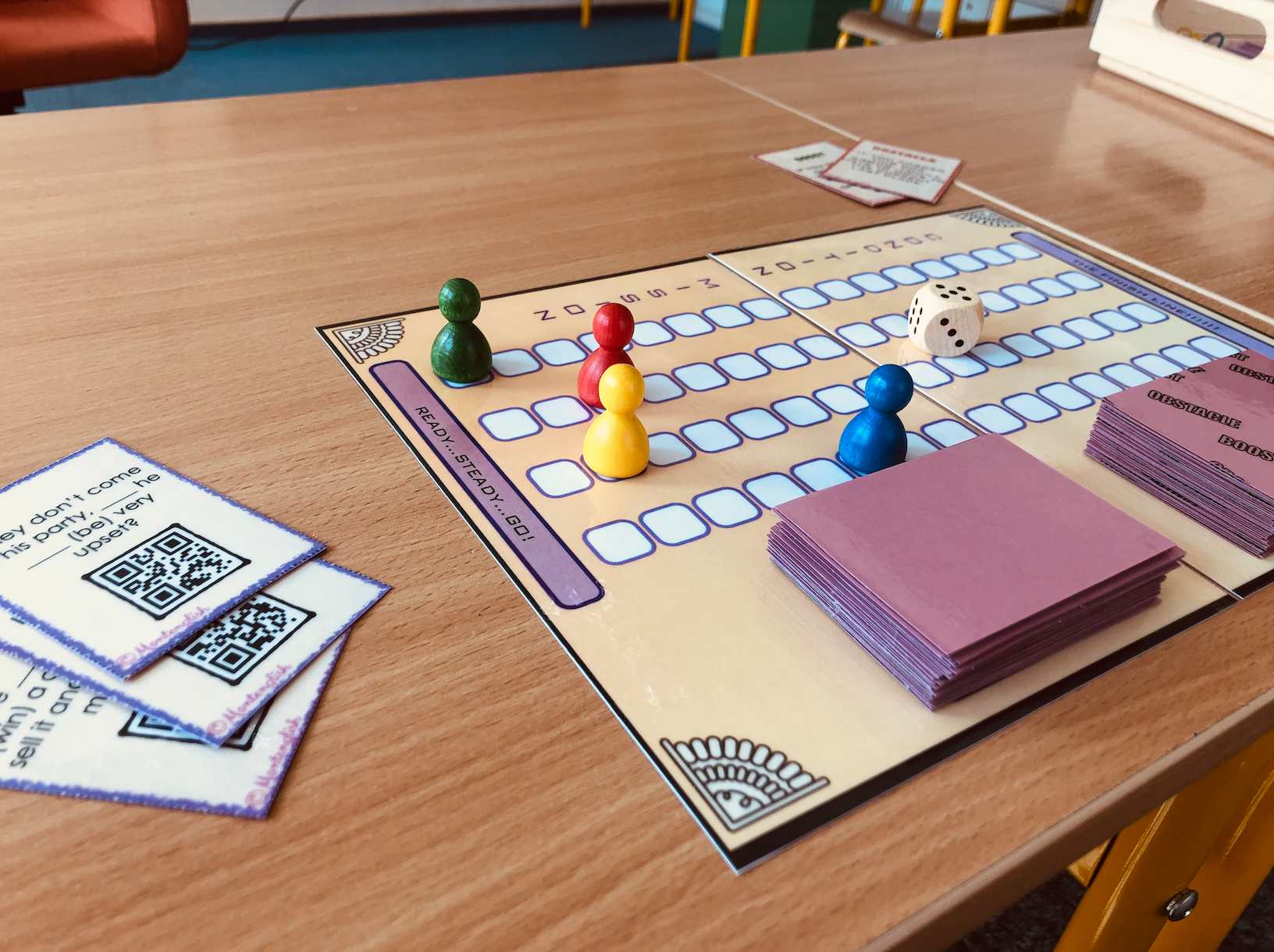 Wild cards sprawiają, że gra staje się ciekawsza i bardziej ekscytująca dla uczniów. Na wild cards znajdują się takie zadania jak "jeśli odpowiesz dobrze, możesz przesunąć się do przodu o dwa pola" lub "jeśli odpowiesz źle, wrócisz na start" oraz inne.