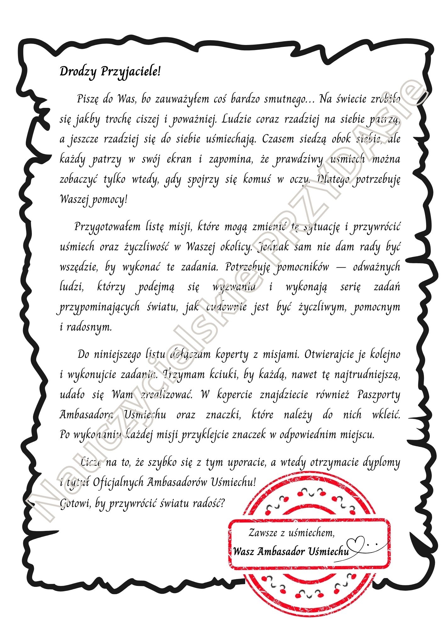 ¾ List od Ambasadora (najlepiej zapieczętuj go w kopercie),