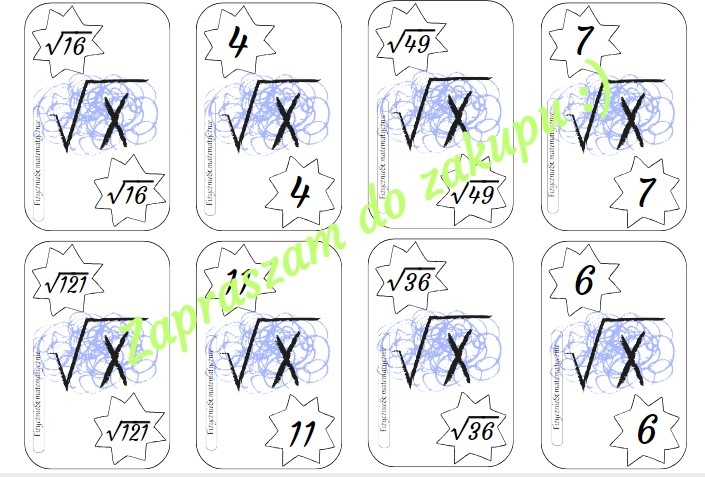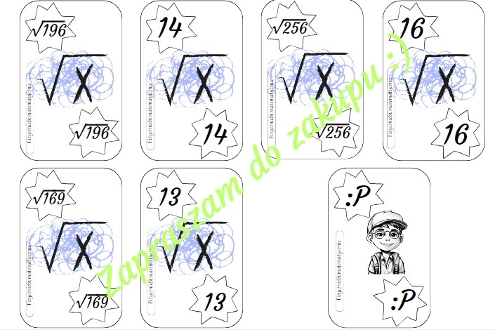 Gra wzorowana na znanej karcianej grze Piotruś. Gra utrwala umiejętność obliczanae pierwiastka kwadratowego z liczb w zakresie do 400 i mogą w nią grać zespoły 2-4 osobowe.