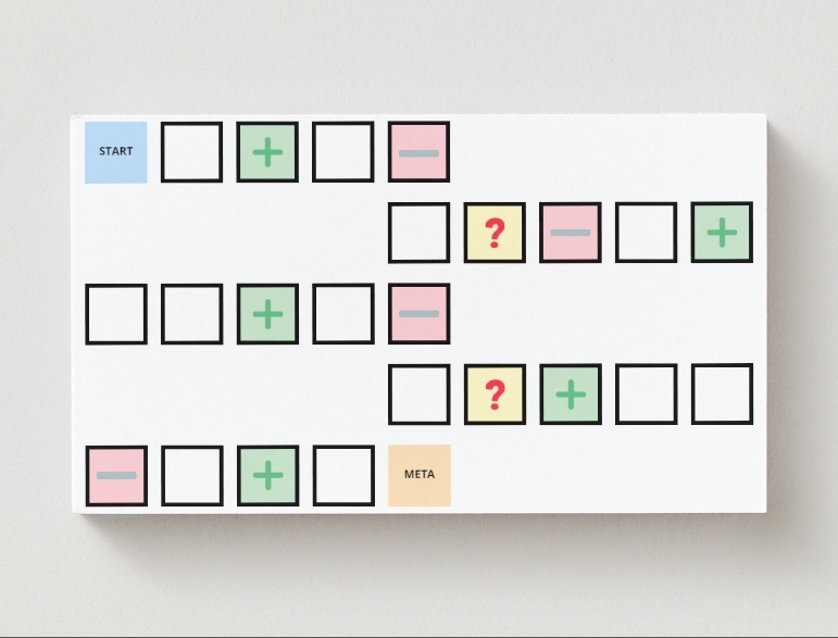 - Kolorowa, atrakcyjna plansza – zaprojektowana w formacie A3 (lub większym) z wyraźnie oznaczonymi polami „+” i „–”. Dzięki temu dzieci intuicyjnie rozpoznają dobre i złe praktyki.