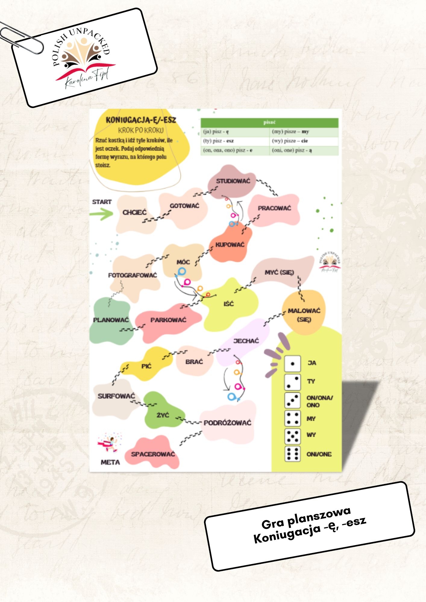 „Koniugacja -ę, -esz” to prosta i angażująca gra, dzięki której uczniowie ćwiczą odmianę czasowników w naturalny sposób — przez zabawę i powtarzanie.