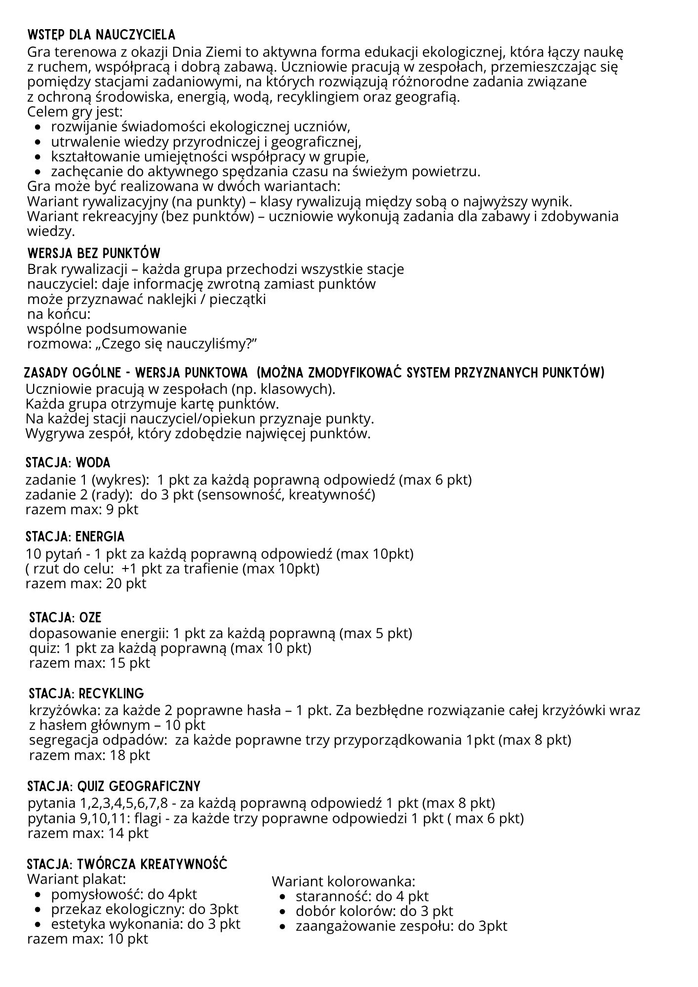 Gra przeznaczona jest do pracy zespołowej i może być realizowana w szkole lub na świeżym powietrzu.