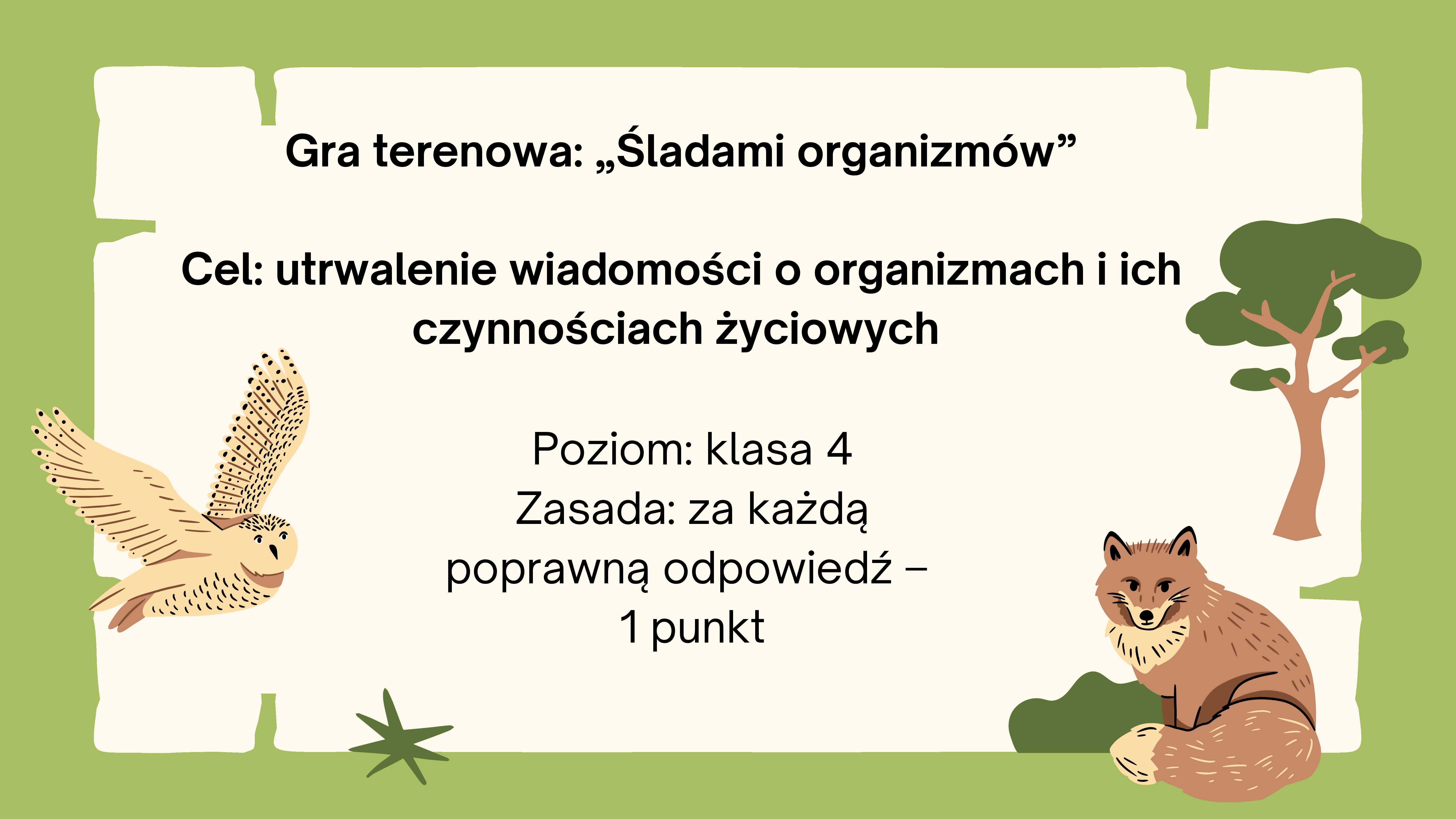 Gra terenowa, stacje zadaniowe przyroda klasa 4 "Poznajemy świat organizmów"