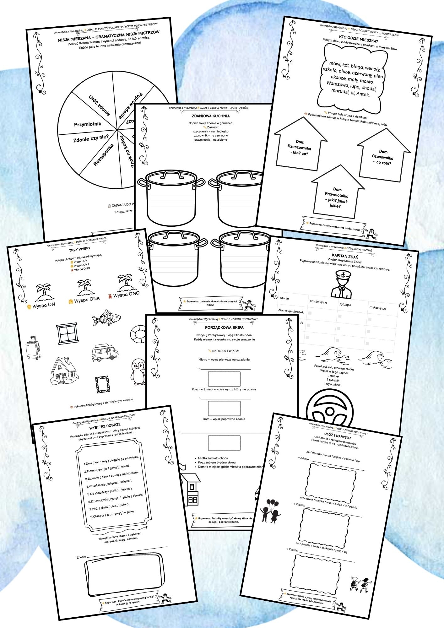 Dzieci uczą się przez zabawę, wyobraźnię i działanie, a nauczyciel dostaje gotowy materiał bez przygotowań. 📚 W ŚRODKU: Miasto Słów • Fabryka Słów • Rodzinna Wyspa • Budowniczy Zdań • Kraina Wielkich Liter • Wyspa Zdań • Miasto Rozsypane • Malarze Słów • Naprawiacze Zdań • Gramatyczna Misja Mistrzów 🔥 DLACZEGO TO HIT? ✅ PDF do druku ✅ klasy 1–3, terapia, rewalidacja ✅ zadania kreatywne i plastyczne ✅ bajkowa, spójna koncepcja ✅ dyplom Mistrza Gramatyki 🎯 To nie są zwykłe karty pracy. To gramatyka, którą dzieci rozumieją i lubią.