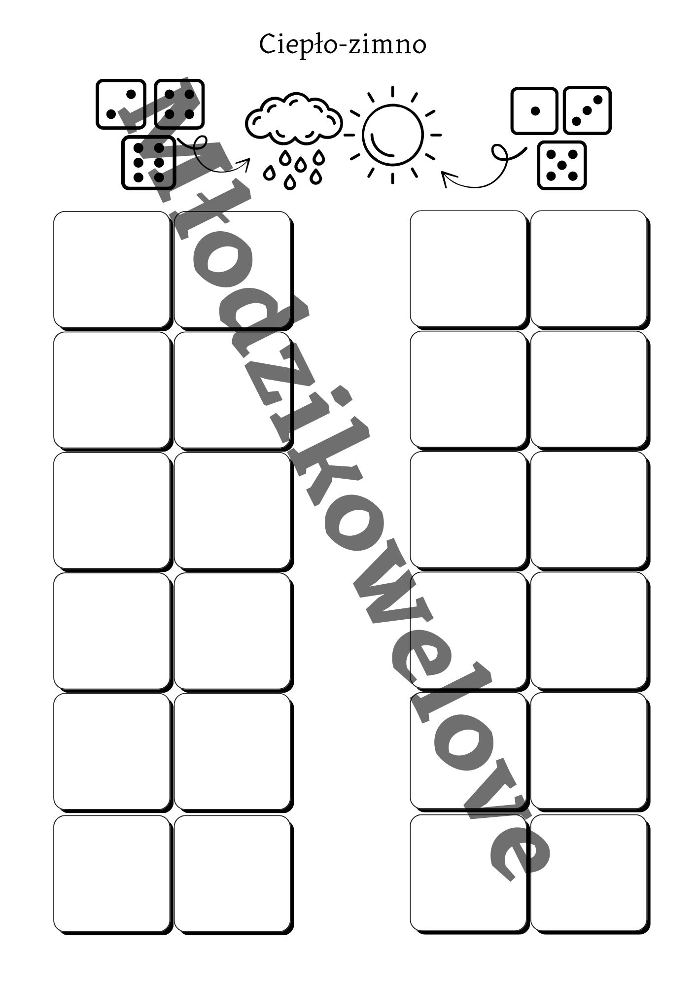 Zestaw gier stolikowych ( 22 gry, po 6 na jesień, zimę , wiosnę oraz 4 na lato) które świetnie sprawdzą się podczas zajęć w klasie. Każda gra opiera się na prostych zasadach i wymaga jedynie kostki do gry oraz kredek lub ołówka.