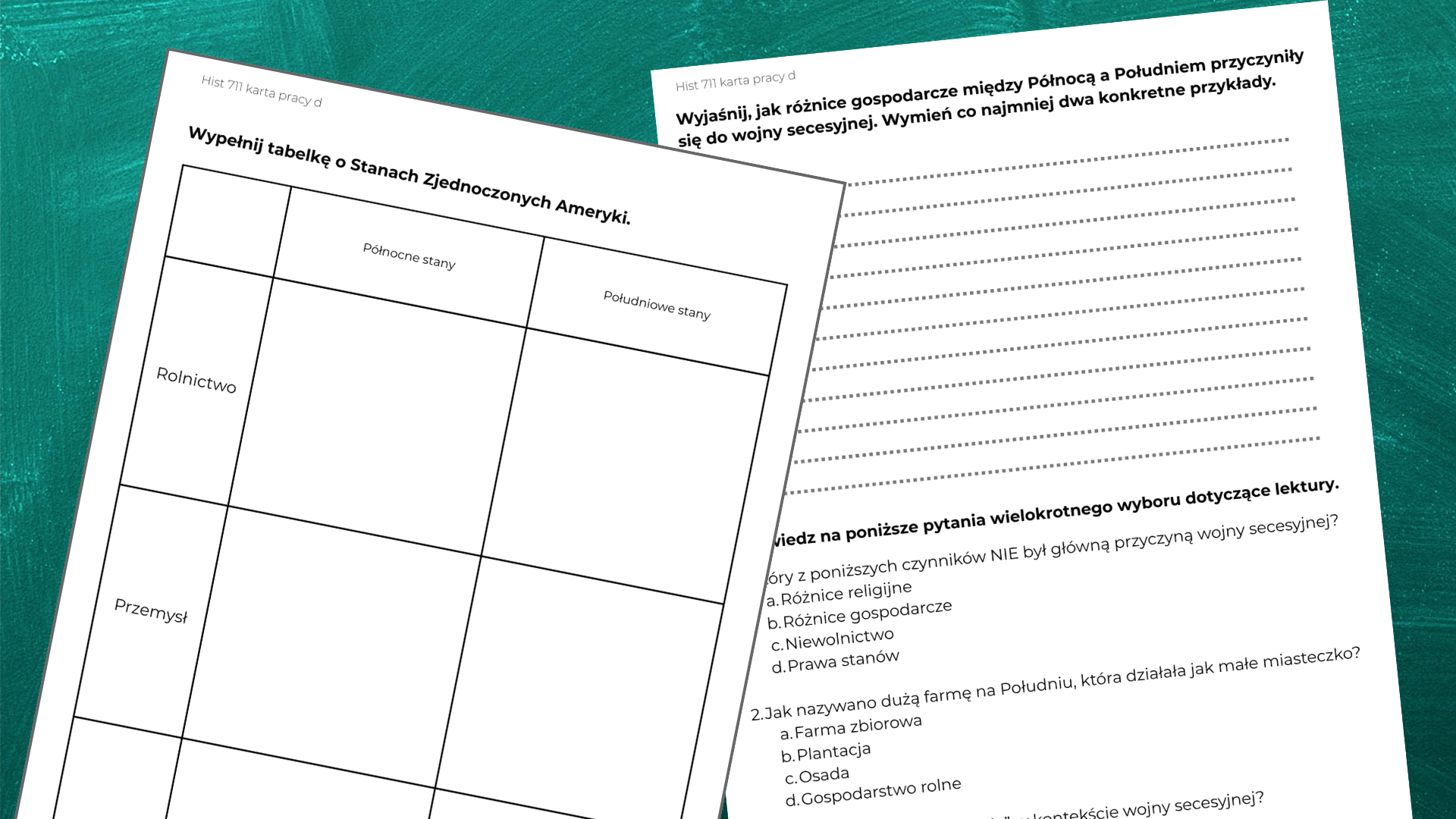 H711 PL karta pracy o wojnie secesyjnej