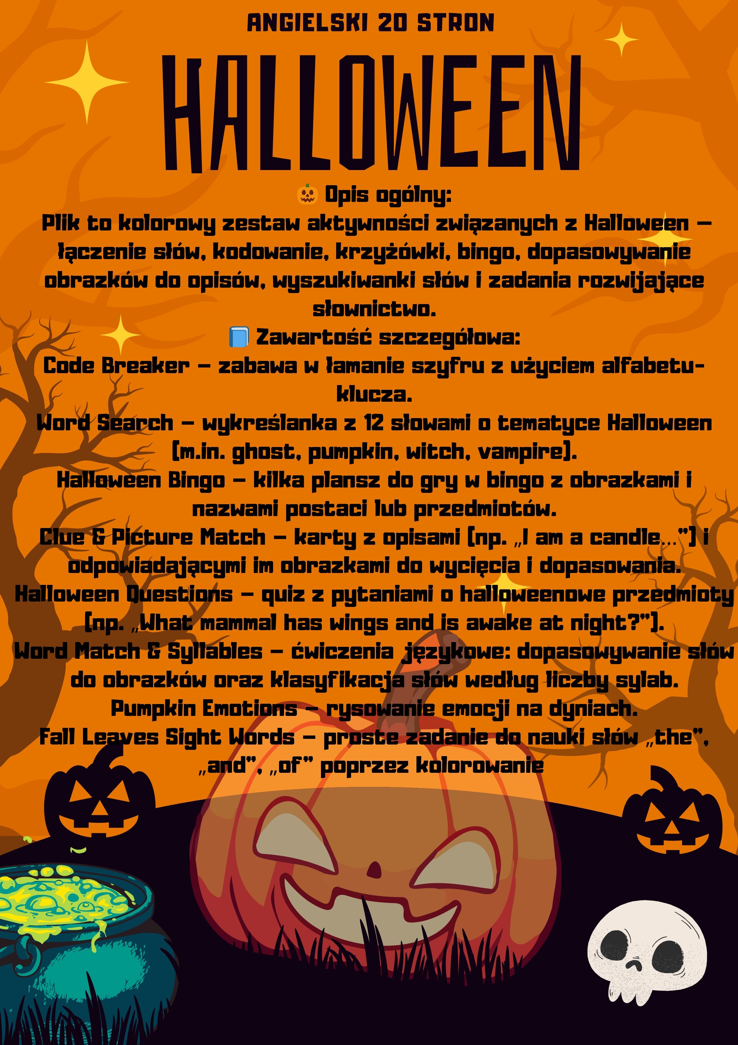 20 stron pracy Angielski ,tematyka i słownictwo związane z obchodami HALLOWEEN.