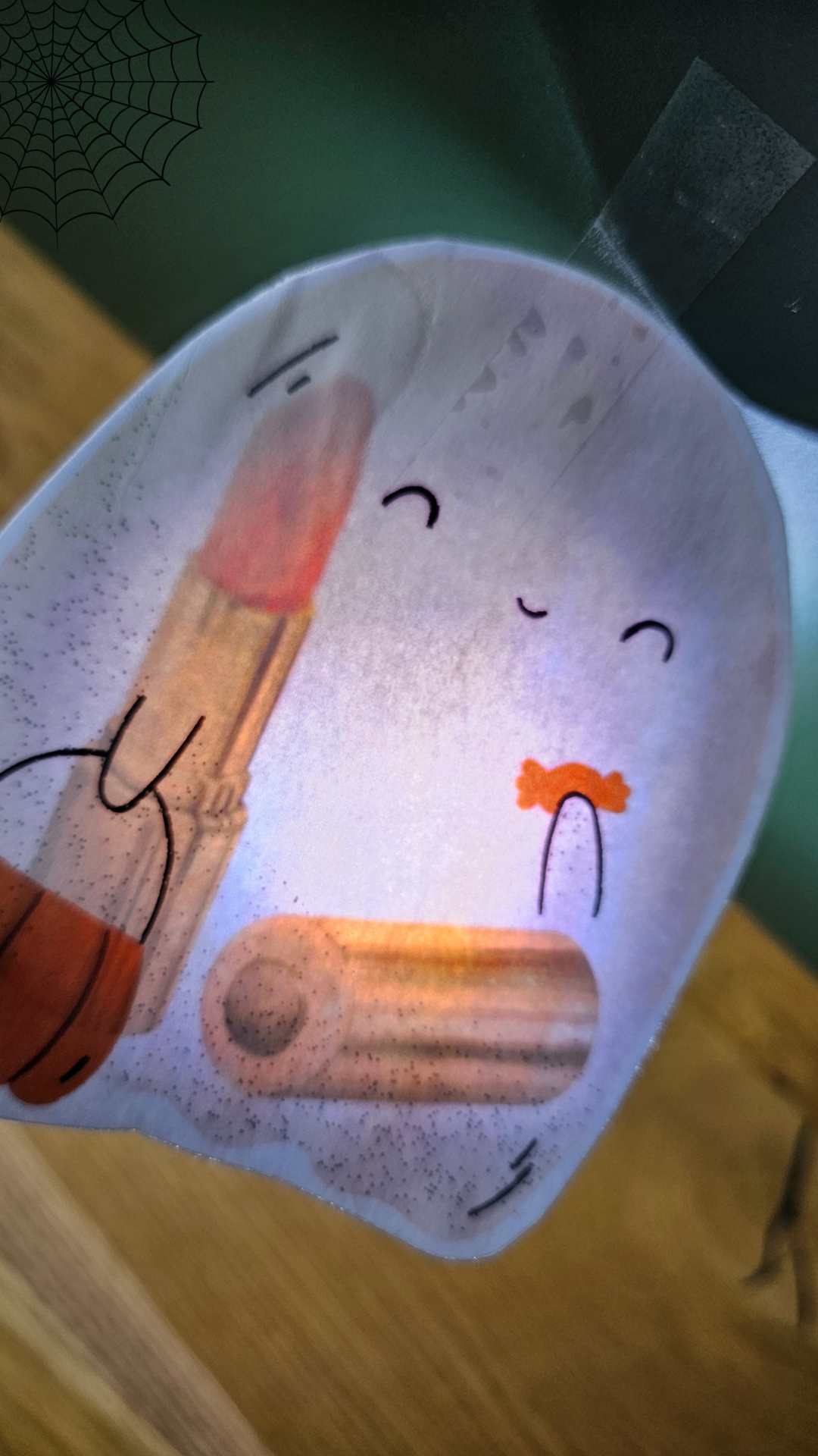 Materiał wyrazowo-obrazkowy do zabawy z latarką. Obrazki ukryte w kształcie duchów – można wykorzystać jako wsparcie w terapii logopedycznej czy terapii dysleksji.