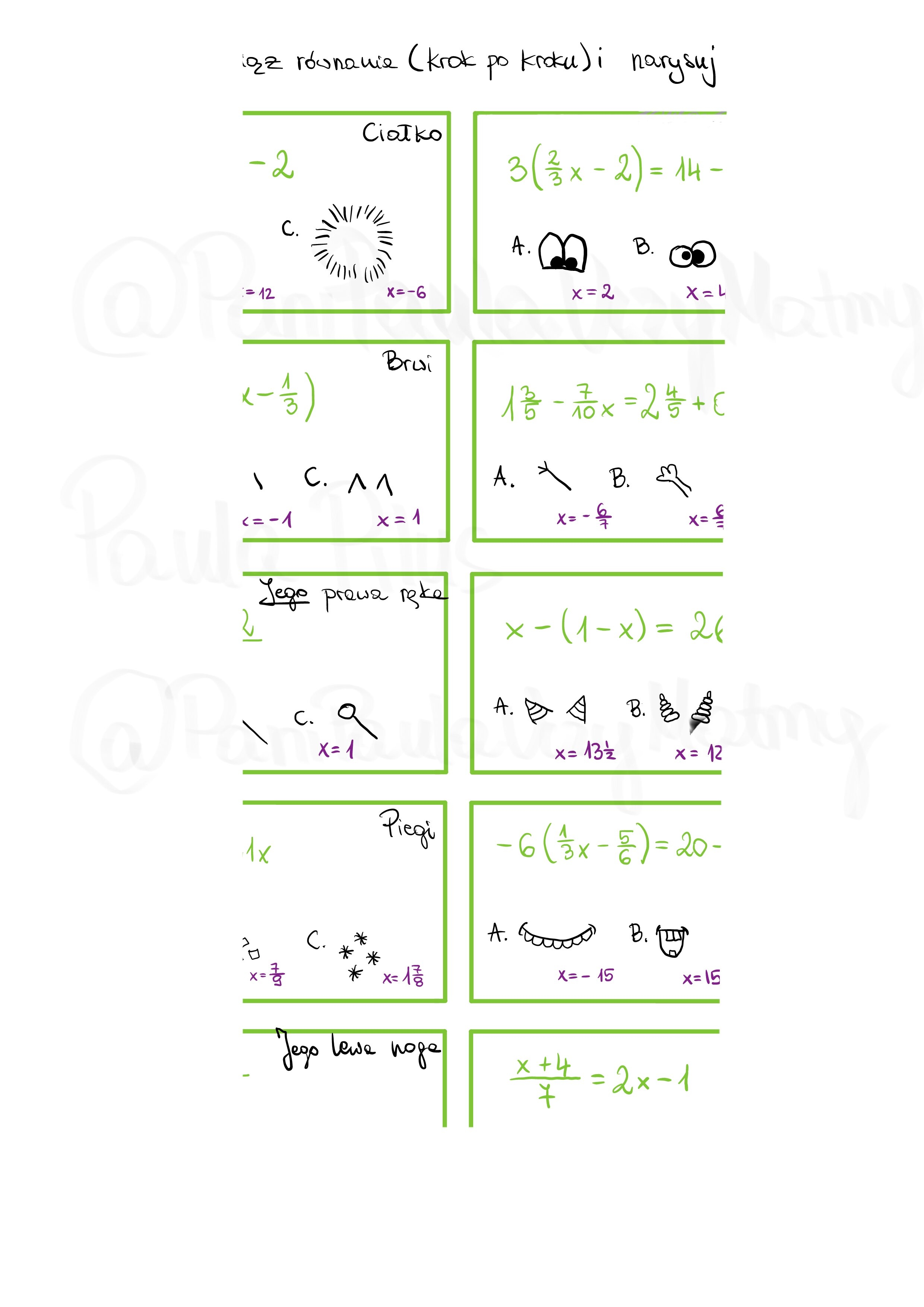 Przenieś naukę matematyki na zupełnie nowy poziom dzięki mojej interaktywnej karcie pracy "Matematyczne Stworki"! Ten materiał, stworzony z myślą o uczniach klas 7-8, to nie tylko świetny sposób na ćwiczenie trudniejszych równań, ale także kreatywna zabawa, która motywuje do poprawnych obliczeń.