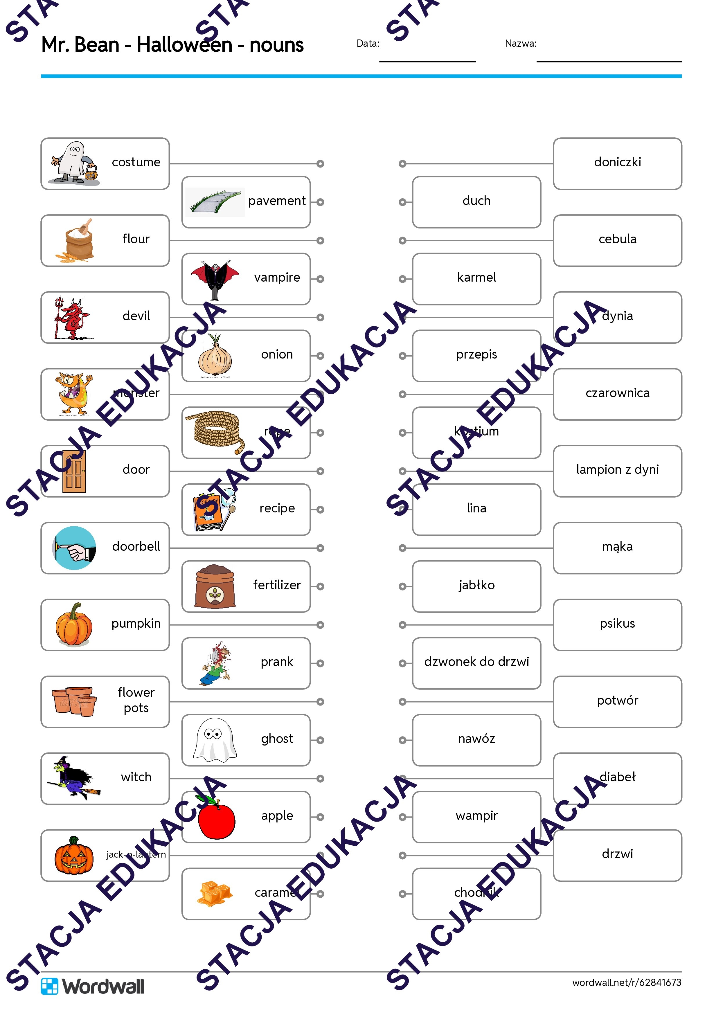 Zestaw atrakcyjnych ćwiczeń do odcinka Mr. Bean: Halloween (sezon 2, odcinek 35), dostępnego na YouTube. Materiały zostały opracowane tak, aby łączyć naukę języka angielskiego z zabawą i tematyką świąteczną.