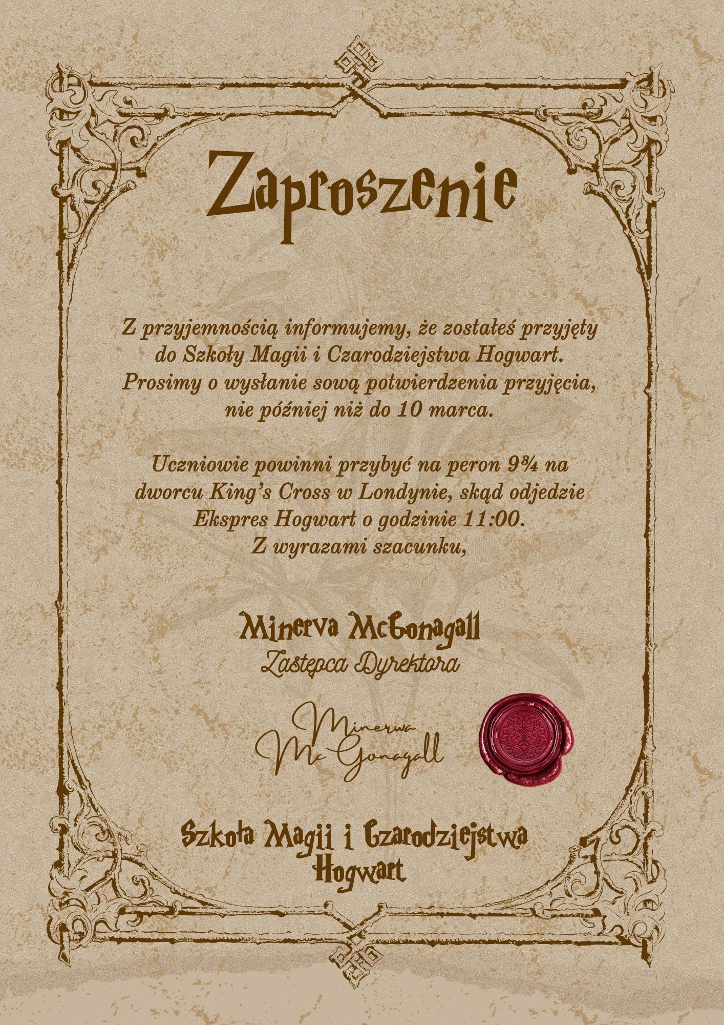 - Zaproszenie od prof. McGonagall
