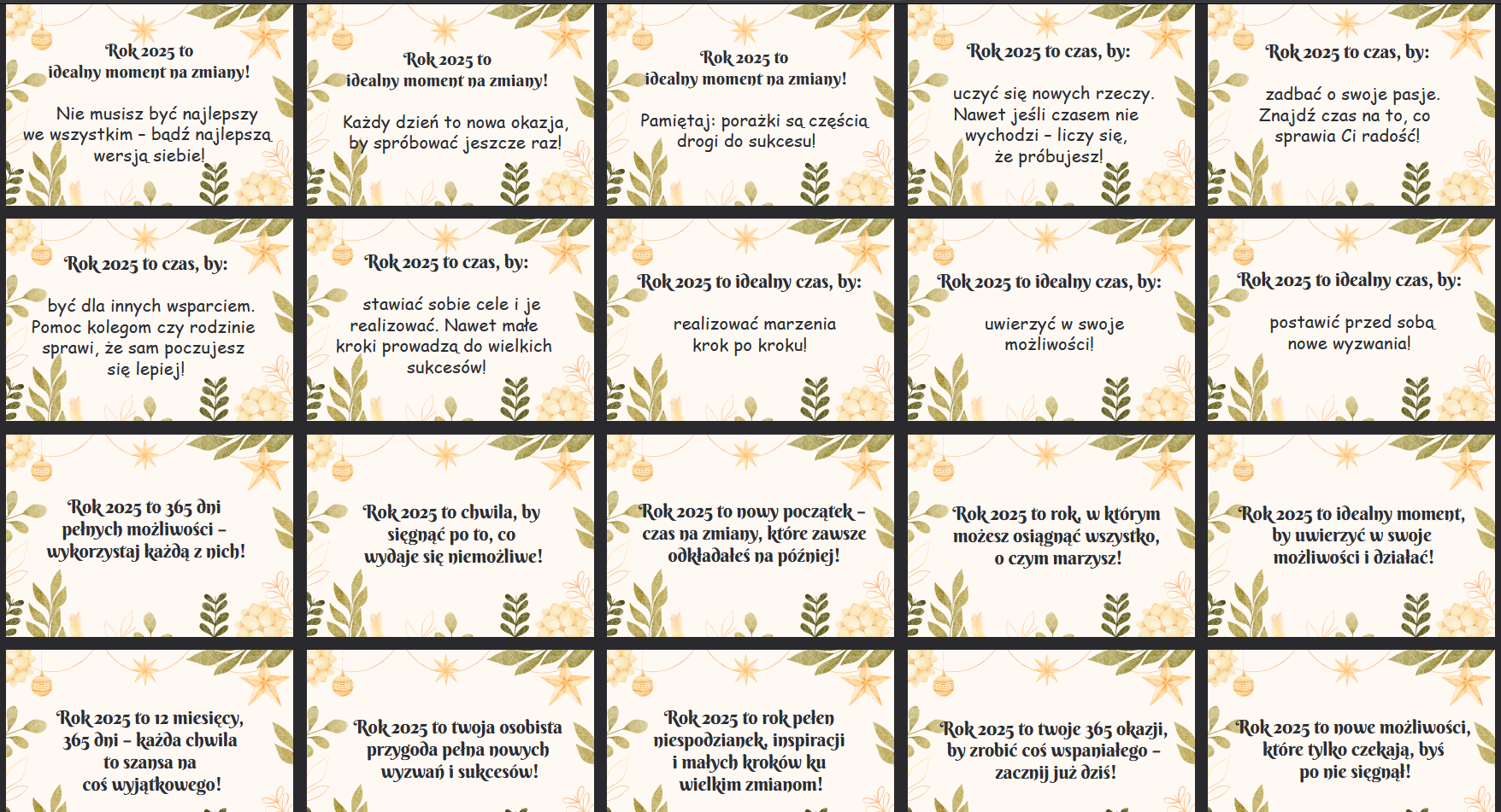 30 haseł motywujących na Nowy Rok 2025. Fromat 1 hasło xA4. Zapraszam!