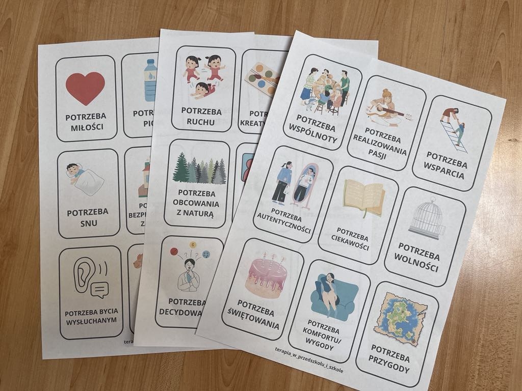 - Popracujcie z kartami potrzeb - doprecyzujcie, co rozumiecie pod poszczególnymi potrzebami, zastanówcie się, czy łatwo jest utrzymać balans potrzeb, czy któreś z nich są trudniejsze w realizacji.