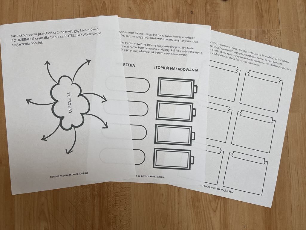 - karta pozwalająca zastanowić się, jakie działania podjąć, by naładować potrzebę