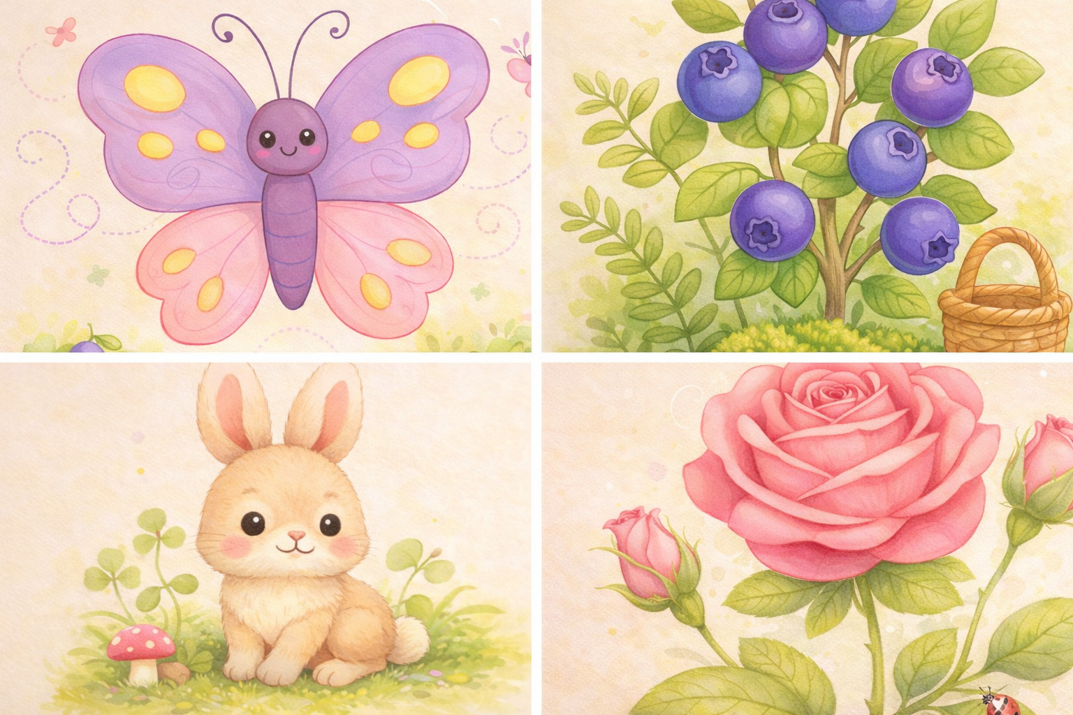 🌸 spokojną, przyjazną dzieciom tematykę ogrodu i lasu