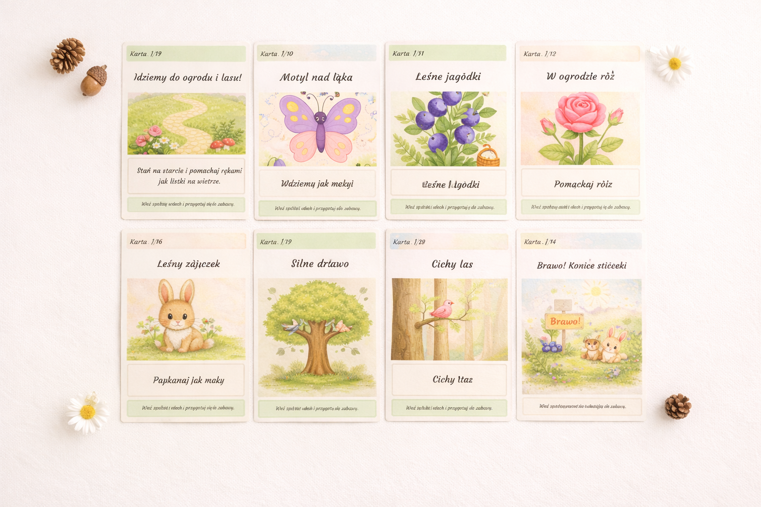 #kartypracy #kartyruchowe #sciezkazadaniowa #zabawyruchowe #edukacjadzieci #przedszkole #nauczycielprzedszkola #pomoceedukacyjne #pdfdladzieci #materialydodruku #zabawysensoryczne #motorykaduza #rozwojdziecka #edukacjawczesnoszkolna #zajeciadladzieci #terapiapedagogiczna #integracjasensoryczna #las #ogrod #naturawdzieciecejzabawie