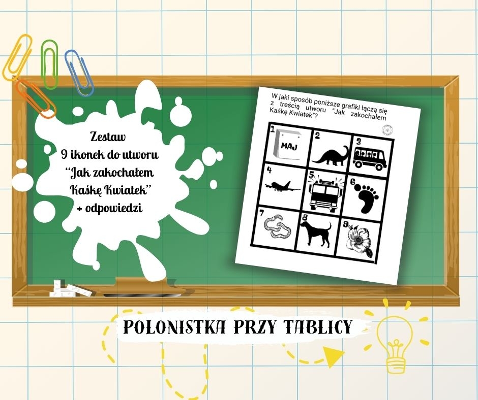 9 ikonek do lektury "Jak zakochałem Kaśkę Kwiatek", które sprawdzą się jako wstęp do lektury bądź jej podsumowanie, a nawet kartkówka.