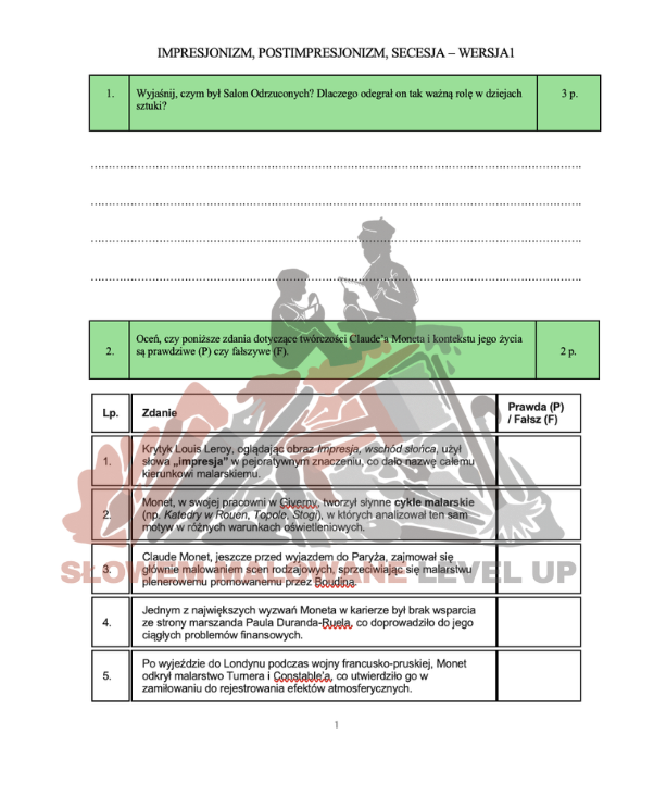 Przygotowaliśmy 12 ZADAŃ typu maturalnego z kluczowych epok: IMPRESJONIZM, POSTIMPRESJONIZM i SECESJA!