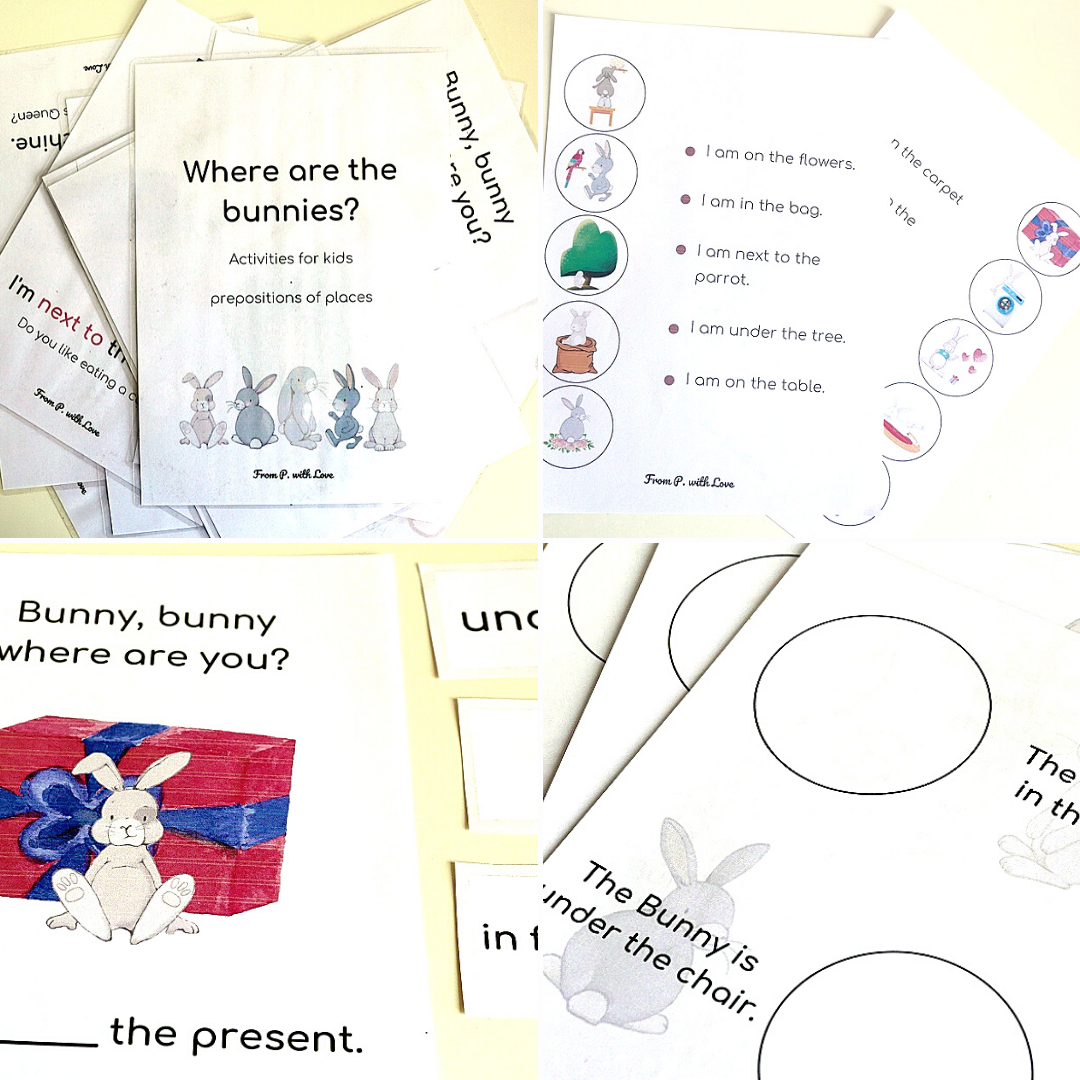 Zapraszam do pobrania materiału związanego z prepositions of place (28 stron): - gotowe do druku karty wyrazowe z przyimkami miejsca: ON, IN, UNDER, NEXT TO, BEHIND, IN FRONT OF - obrazki do prezentacji wybranych przyimków wraz z sympatycznymi króliczkami oraz pytaniami aktywizującymi grupę - rymujący się tekst, co ułatwi uczniom odbiór i utrzyma ich skupienie na ciut dłużej - zadanie do uzupełnienia brakujących przyimków - zadanie do przeczytania i odnalezienia odpowiedniego obrazka (read and match) - zadanie do przeczytania oraz narysowania obrazka (read and draw) - tło do druku (atrakcyjna druga strona karty pracy :))