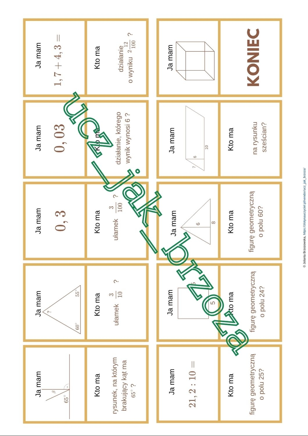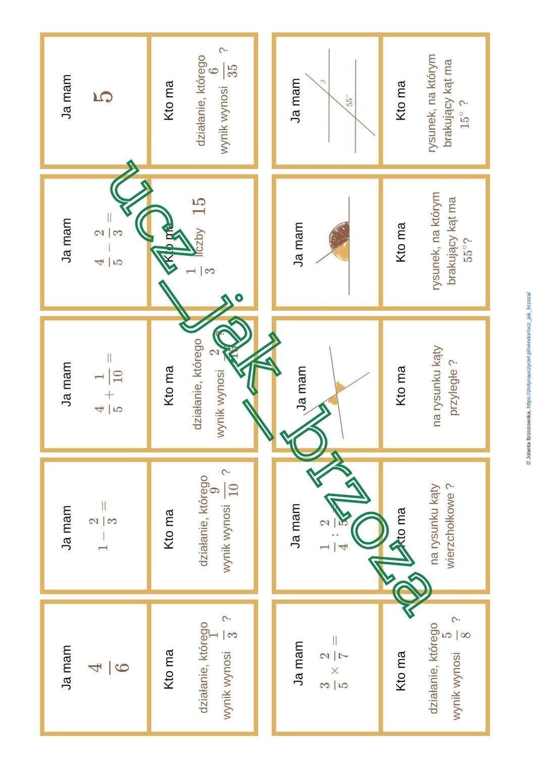 Materiał składa się z 30 kart. Możesz karty rozdać losowo lub zdolniejszym uczniom dać po dwie karty.
