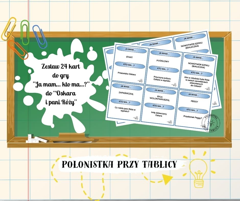 Zestaw 24 kart do gry “Ja mam – kto ma?” w oparciu o lekturę uzupełniającą "Oskar i pani Róża".