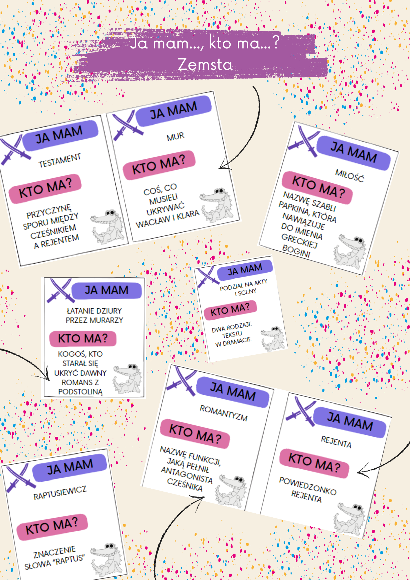 Każdy uczestnik gry otrzymuje kartę. Wyznaczona osoba zaczyna słowami: „Ja mam…”. Następnie pyta: „Kto ma?” i czyta opis na dole karty. Osoba, która może dopasować definicję do hasła na swojej karcie, stwierdza: „Ja mam….” i ponownie zadaje pytanie. Grę zapętlamy aż do momenty, gdy wrócimy do osoby rozpoczynającej zabawę.