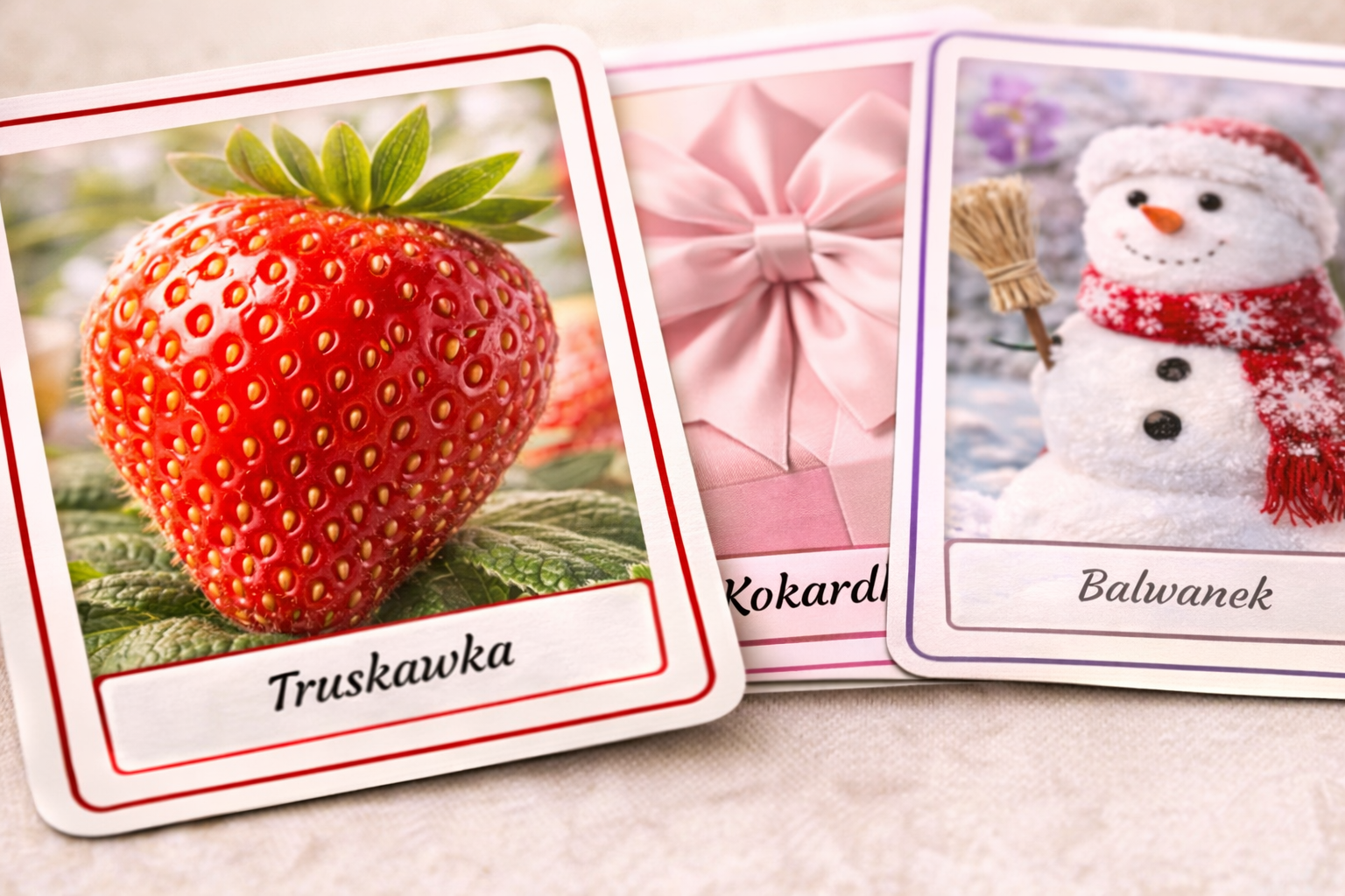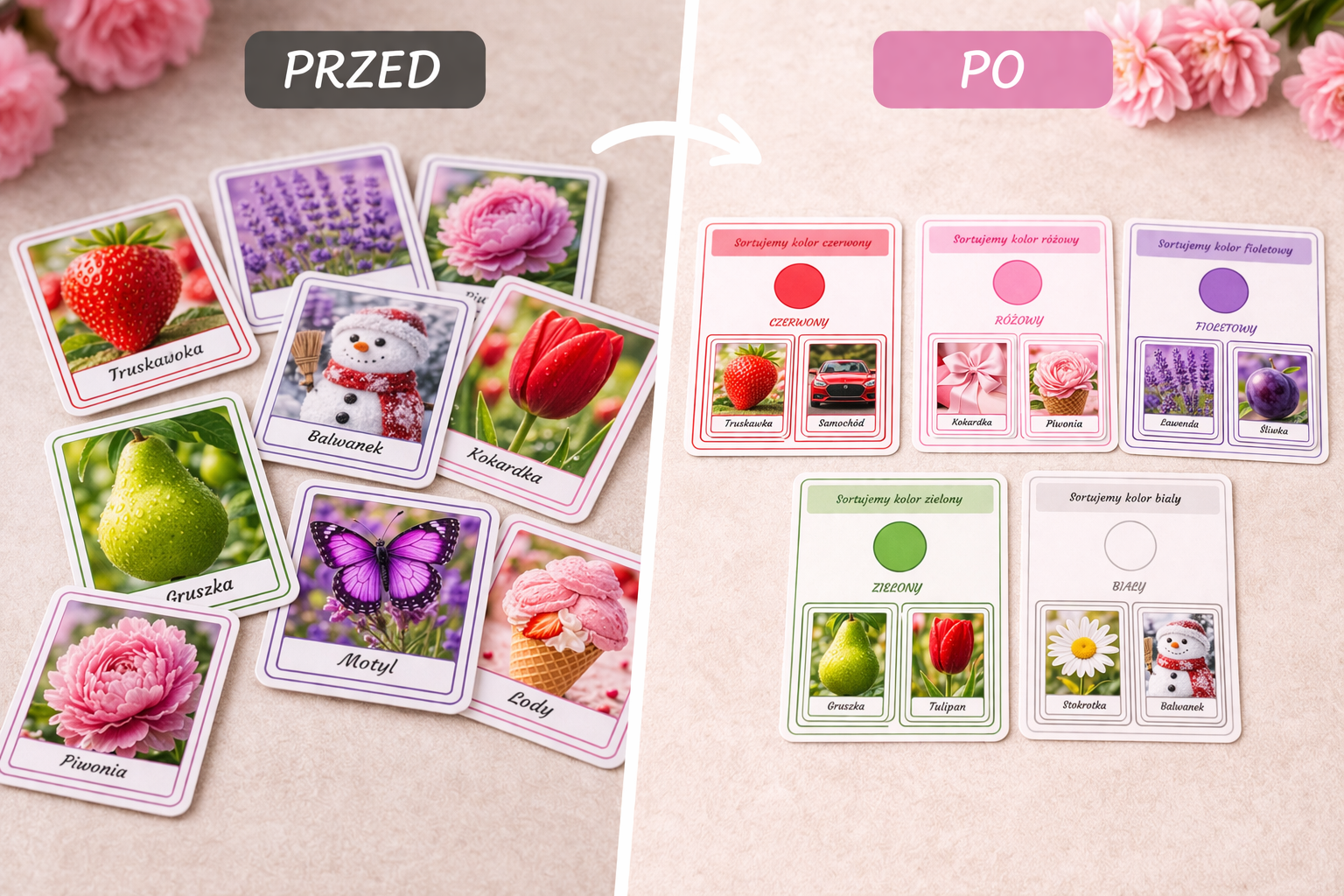 🎯 klasyfikowanie kart na owoce, kwiaty i przedmioty