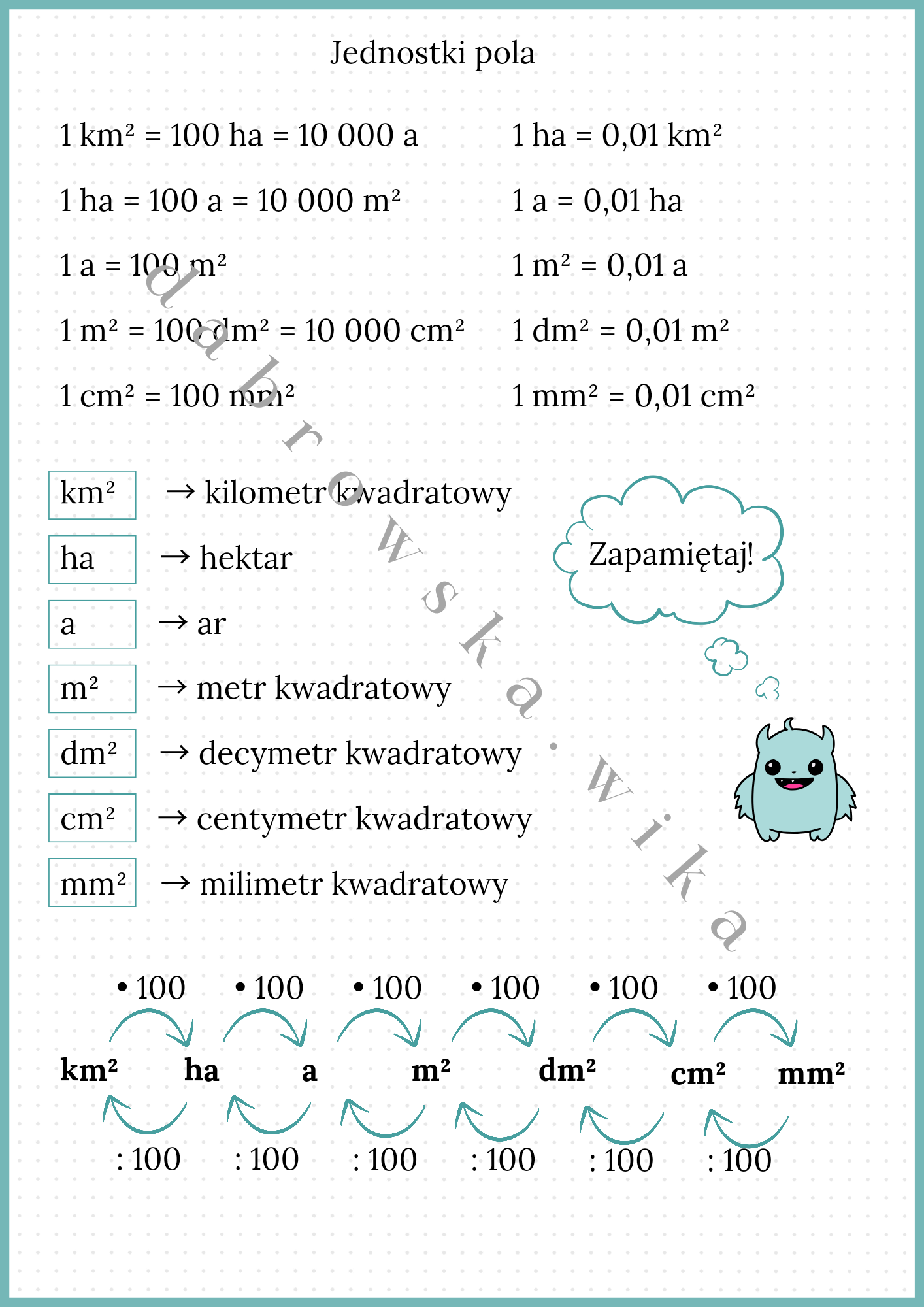 Materiał zawiera notatkę dotyczącą jednostek pola.