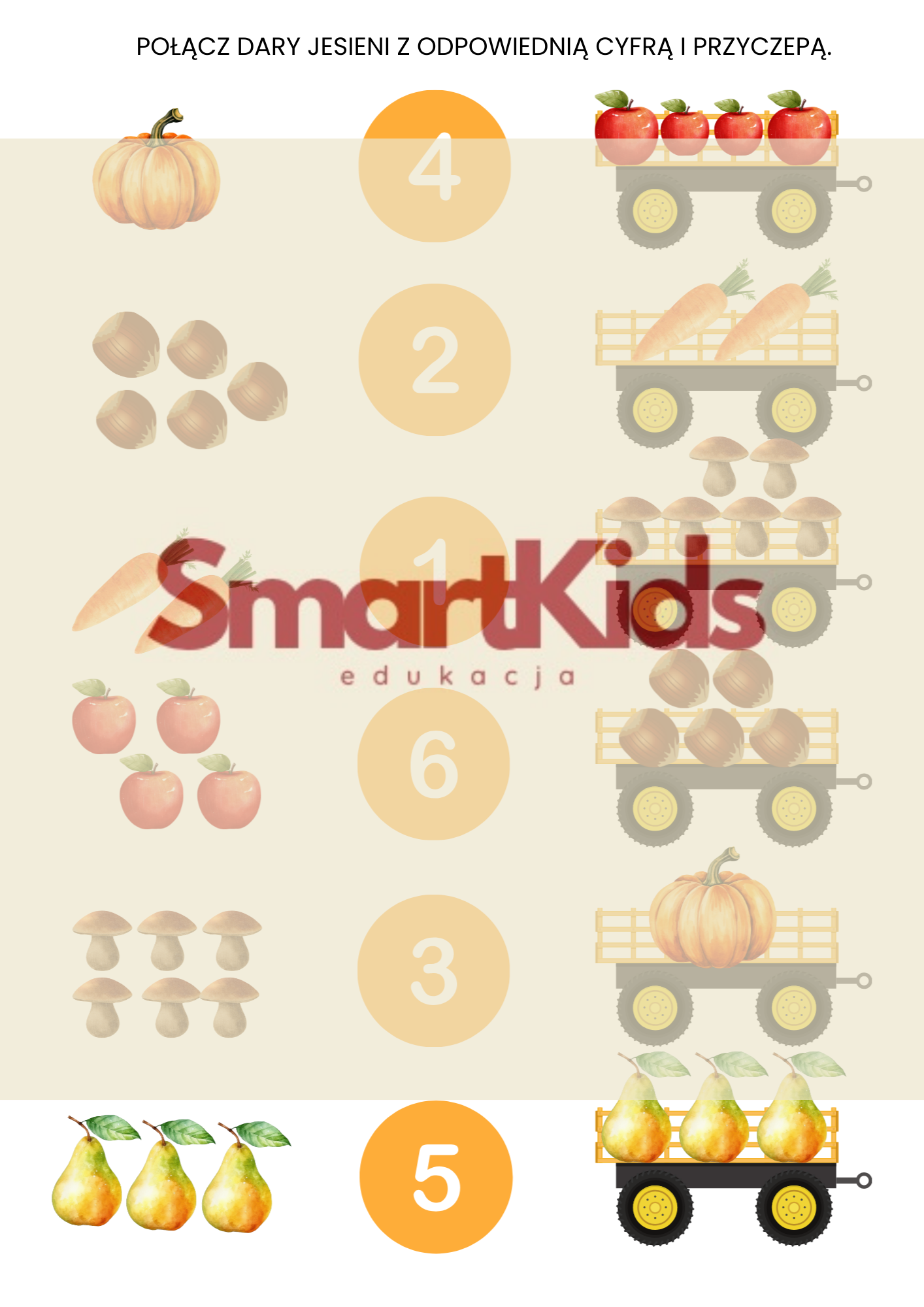 - 5 strona „połącz dary jesieni z odpowiednią cyfrą i przyczepką”