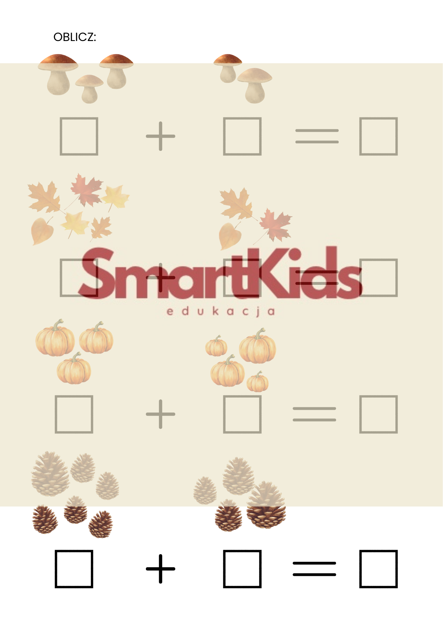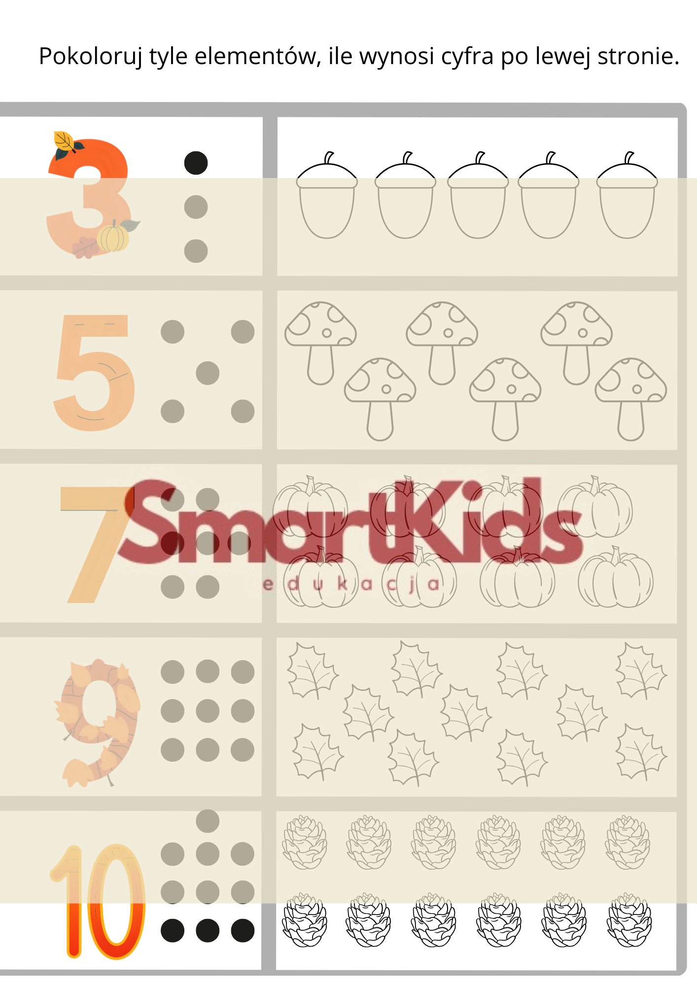 - 10 strona „pokoloruj elementy” (np 3= pokolorowane 3 dynie)