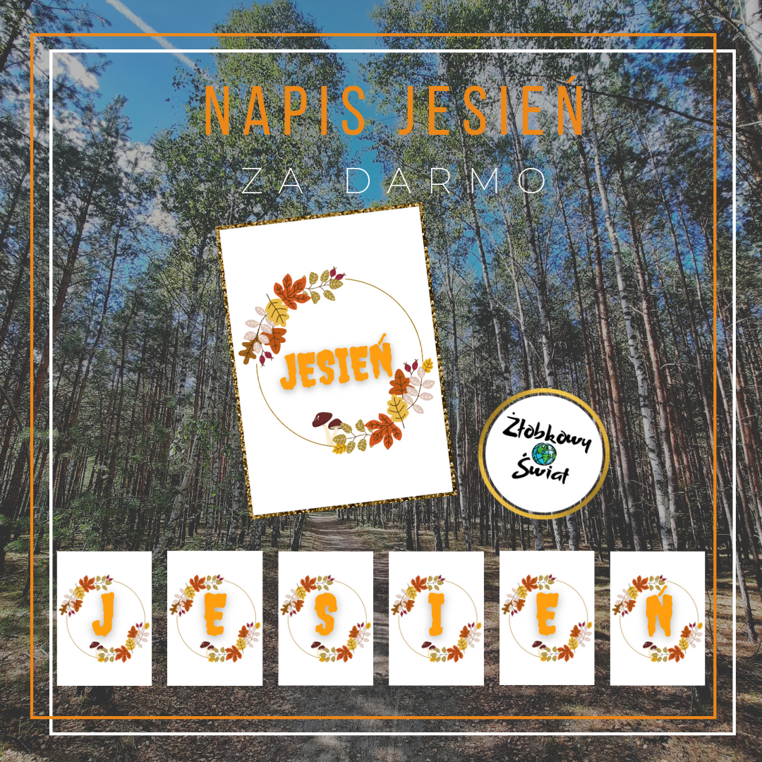 Napis Jesień w całości na jednej kartce i pojedyncze litery na kartce. Można wykorzystać na gazetkę. Żłobkowy Świat