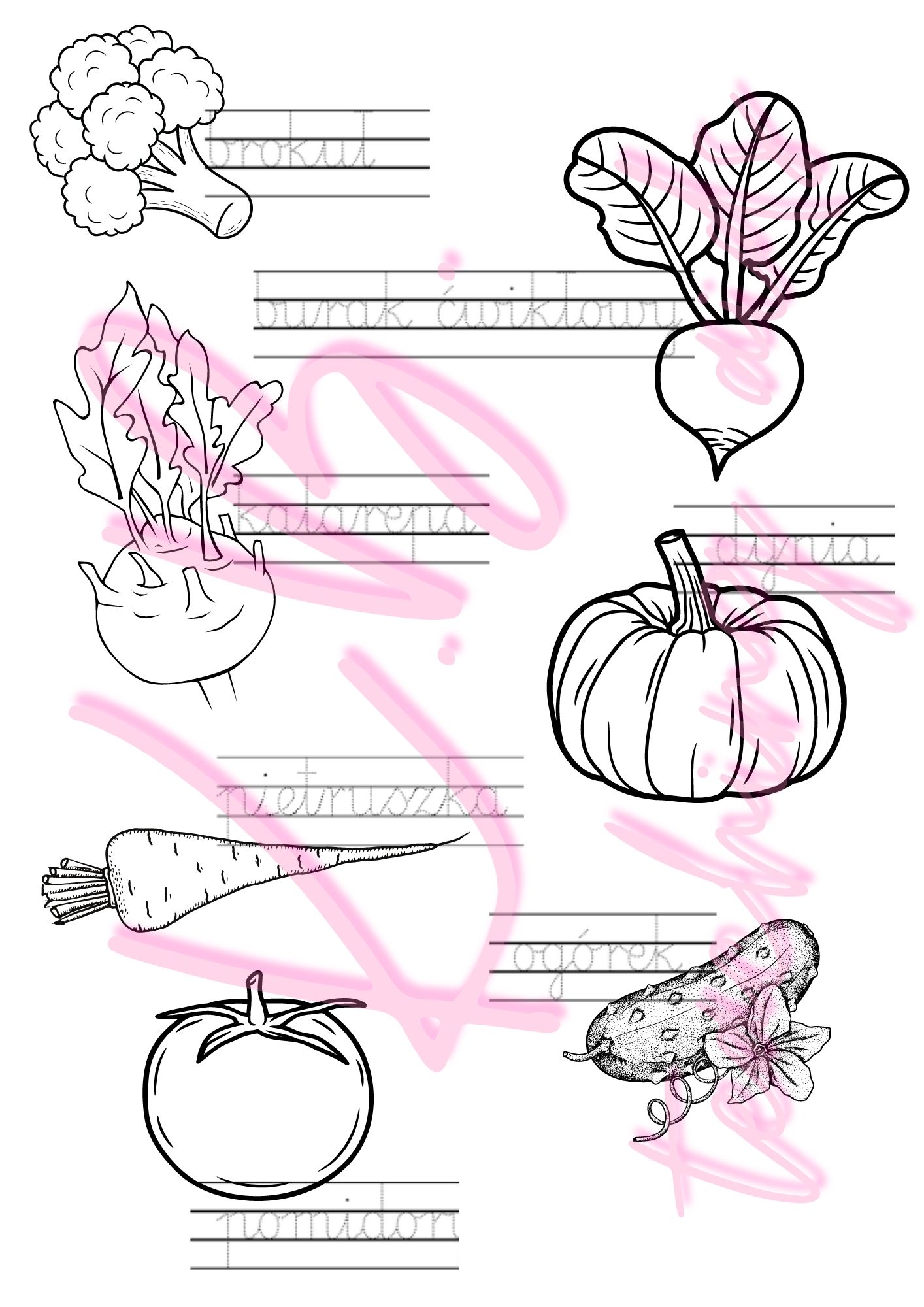 Wklejka i ćwiczenie- jesień w polu i ogrodzie. Karty pracy do pisania po śladzie lub samodzielnego napisania przez dziecko.