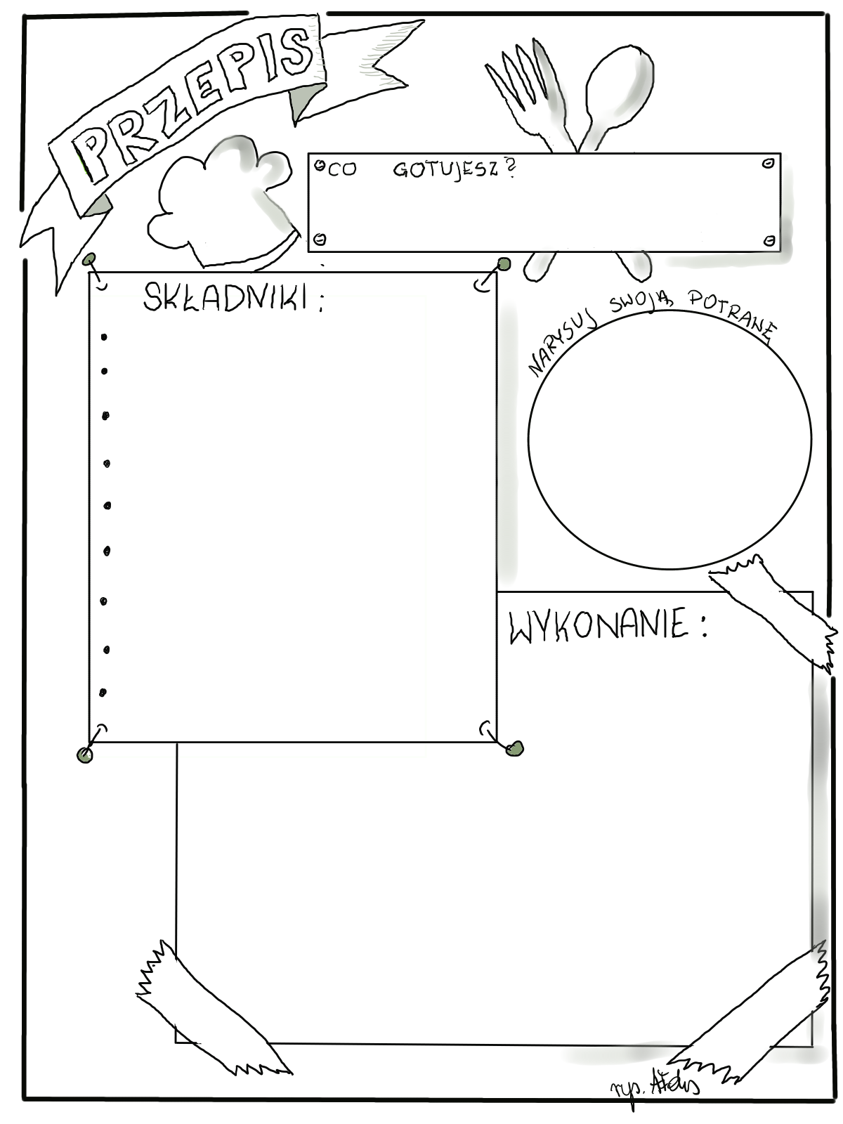 Karta pracy- przepis -co gotujesz? -składniki -wykonanie -narysuj swoją potrawę