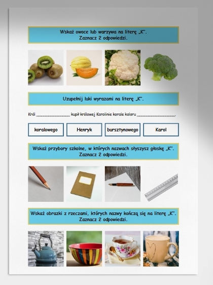 ✅ Ćwiczenia słuchowe – wybieranie wyrazów i obrazków z głoską „K” 🎧