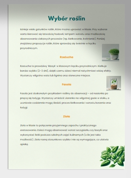Od prostych eksperymentów (np. z kiełkowaniem fasoli) po kulinarne wykorzystanie ziół – każde dziecko znajdzie tu coś dla siebie. - Rozwój umiejętności i wiedzy