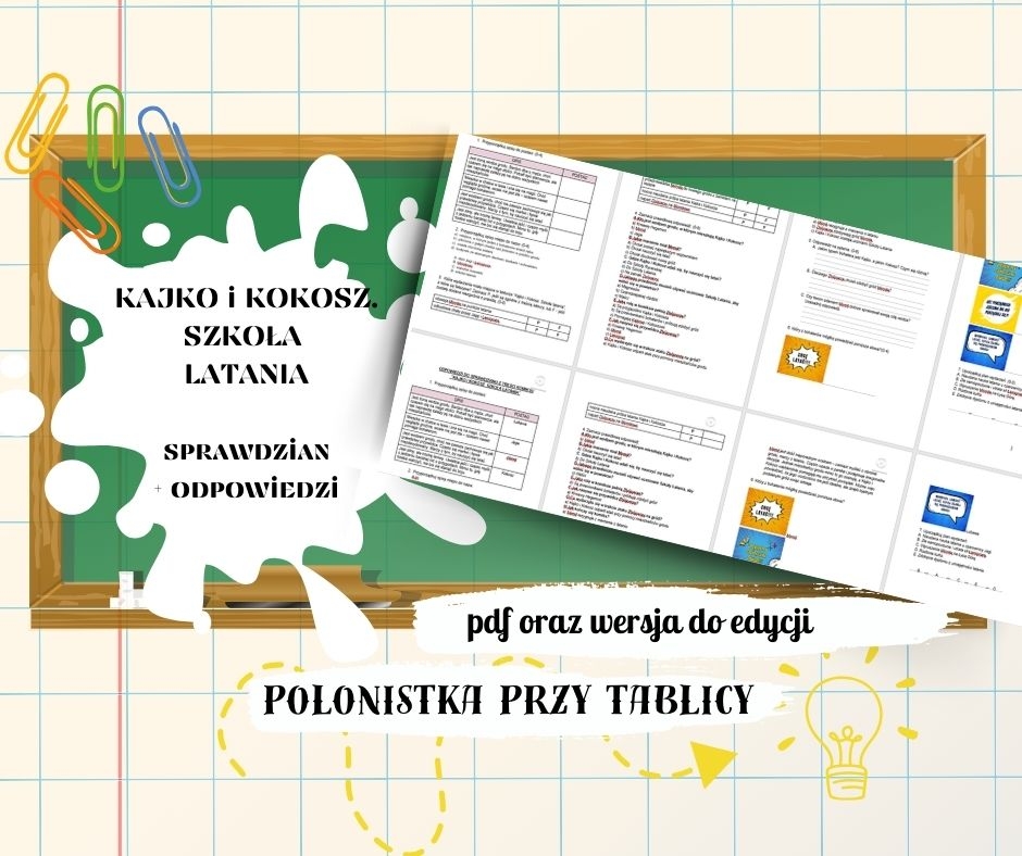 Sprawdzian z lektury do klasy czwartej "Kajko i Kokosz. Szkoła latania" wraz z odpowiedziami.