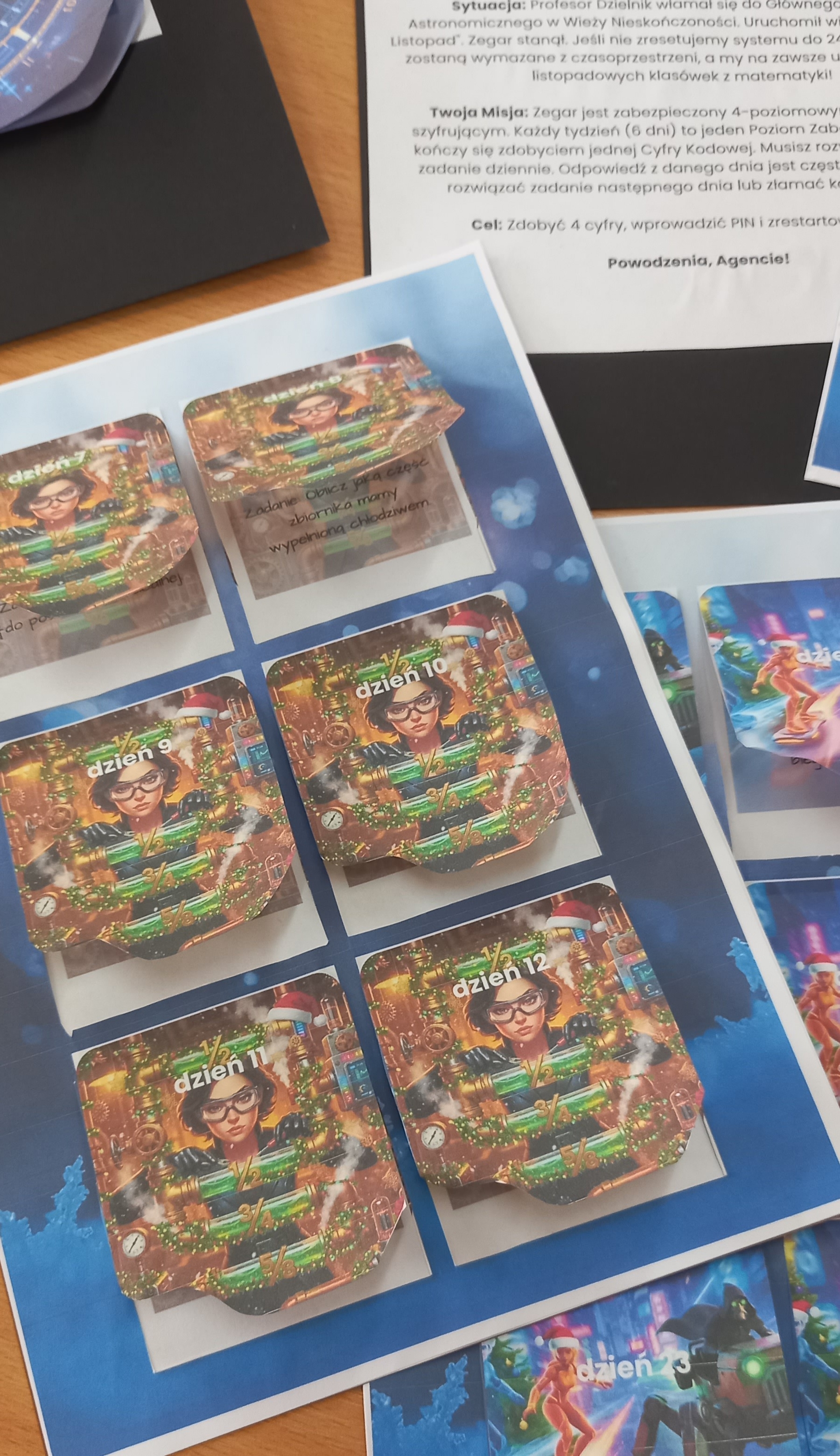 24 Karty Zadań (Misji) – po jednej na każdy dzień adwentu, z pięknymi, tematycznymi grafikami w stylu 3D animation/Sci-Fi.