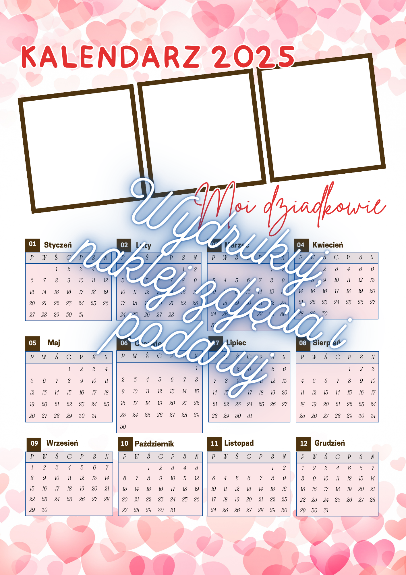 W zestawie znajdziesz kalendarz 2025 w formacie A4, pdf, w formie plakatu.