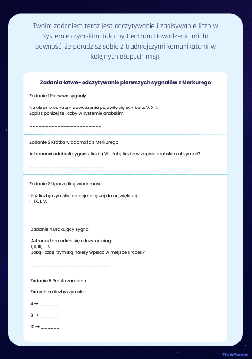 Tydzień 3 to kolejne 5 dni przygody, które łączą czas, kalendarz oraz zapisy liczb w systemie rzymskim z fabułą realistycznej misji kosmicznej.