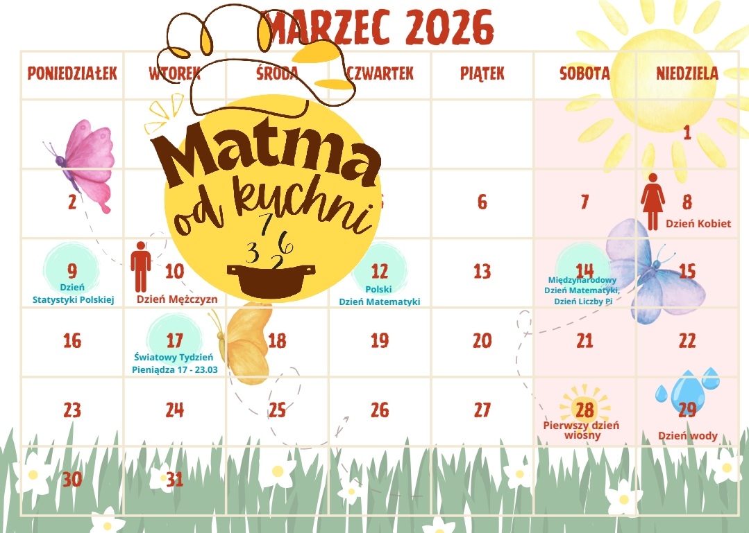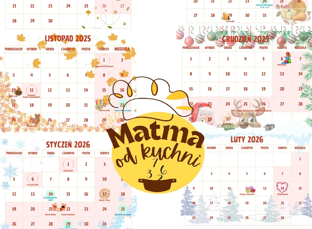 Materiał zawiera trzy wersje kalendarza w zależności od terminu ferii zimowych.