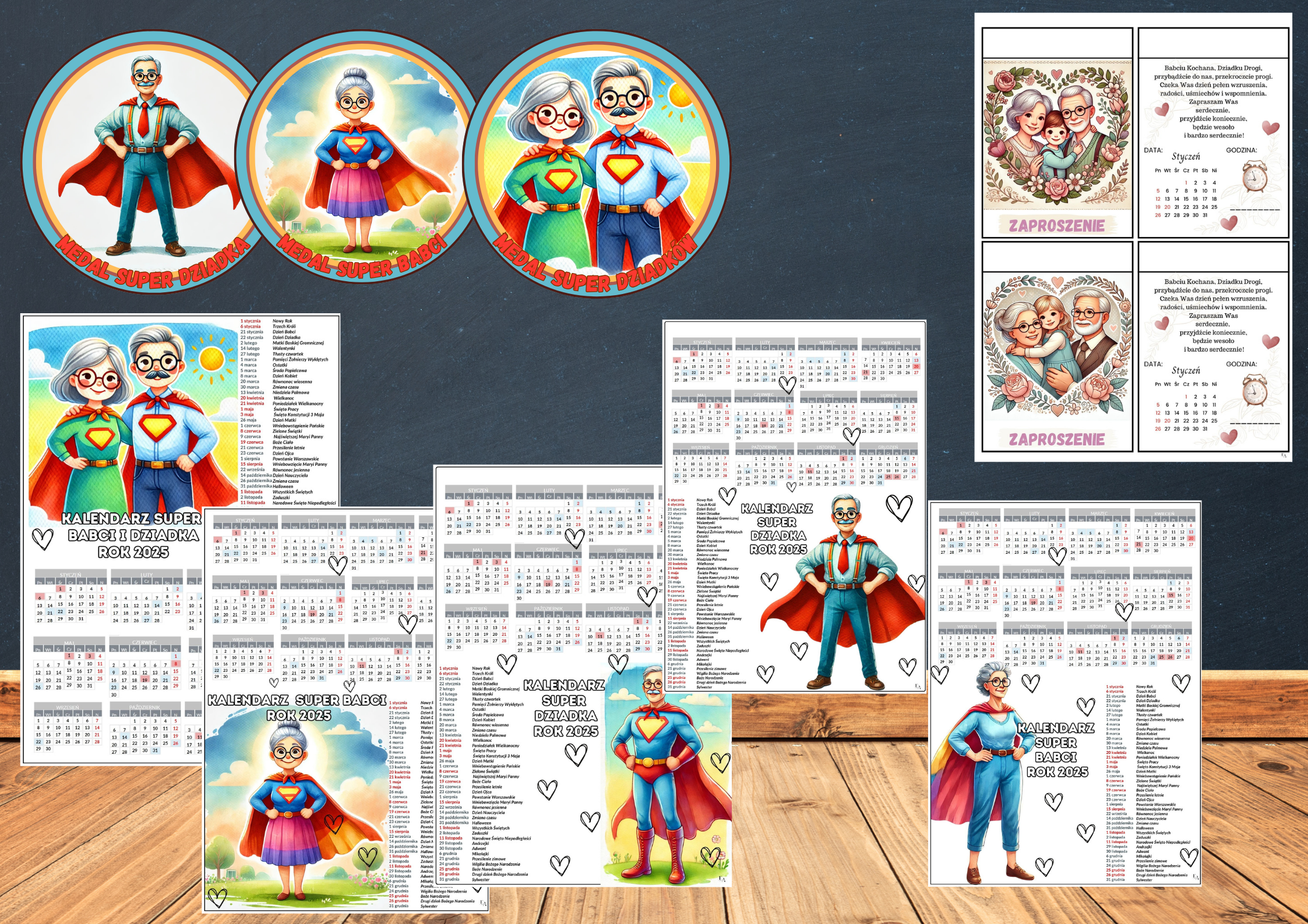 dodatkowo w paczce znajdują się zaproszenia na styczeń 2024, oraz medale dla super Babci