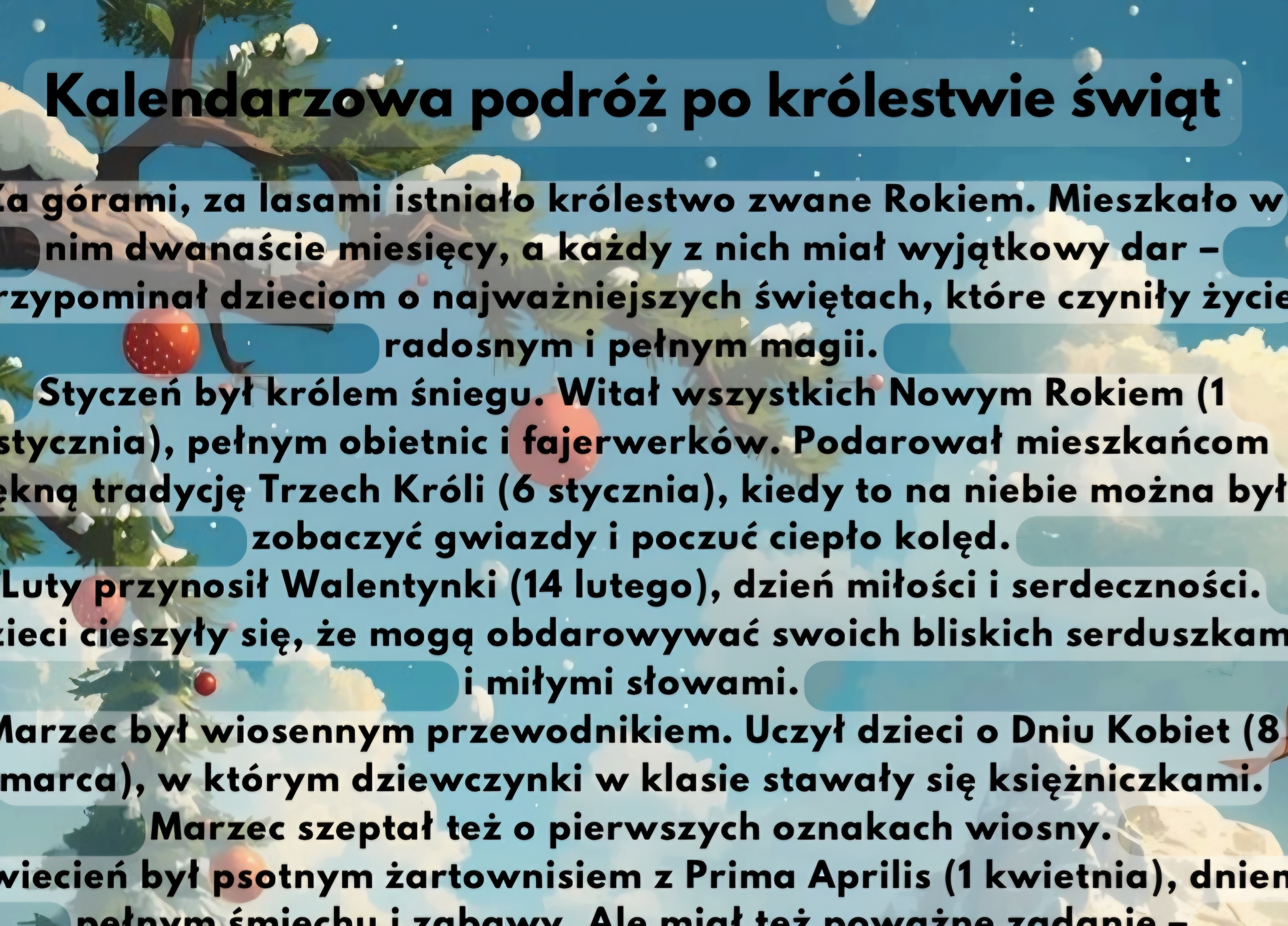 "Kalendarzowa podróż po królestwie świąt" - bajka dla dzieci do zajęć w temacie "Miesiące i Święta"