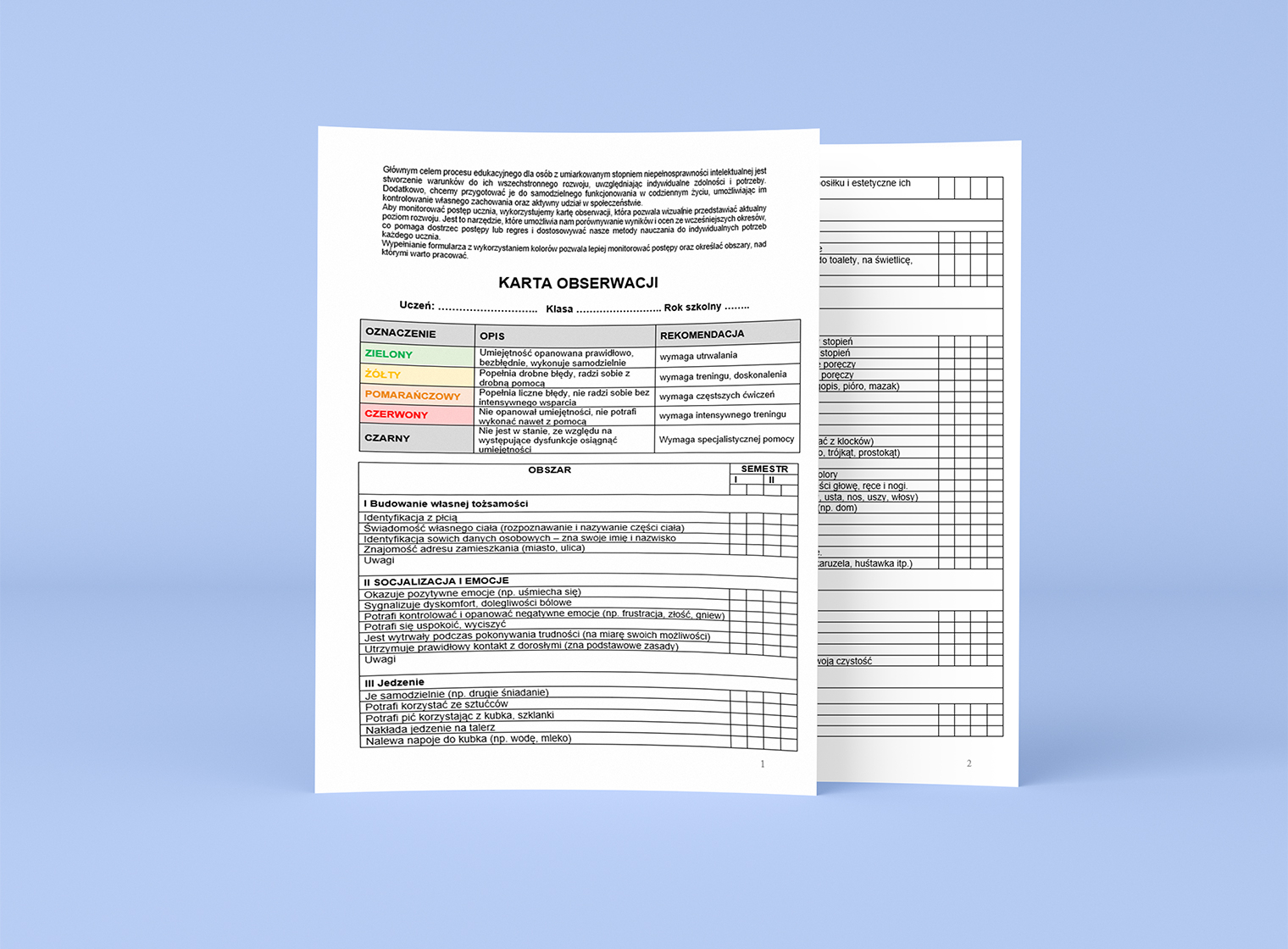 Karta obserwacji pozwala wizualnie przedstawiać aktualny poziom rozwoju ucznia w 12 obszarach aktywności. Jest to narzędzie, które umożliwia porównywanie wyników i ocen z wcześniejszych okresów, co pomaga dostrzec postępy lub regres i dostosowywać nasze metody nauczania do indywidualnych potrzeb każdego ucznia.